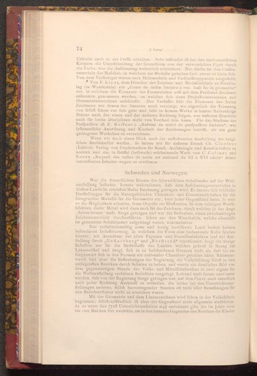 Urtheile auch in der Preffe erhalten. Sehr inftructiv ift bei den mathematifchen Körpern die Unterfcheidung der Grundform von der verwandelten Figur durch die Farbe, was die Anfchauung wefentlich erleichtert. Nur dürfte für den Claffenunterricht der Mafsftab, in welchem die Modelle gehalten find, etwas zu klein fein. Von dem Verfertiger waren auch Holzmodelle und Perfpectivapparate ausgeftellt. Von F. Licot, dem Director der Zeichen- und Modellirfchule zu Nivelles, lag( in Wandtafeln) ein„ Cours de deffin linéaire à vue, bafé fur la géometrie vor, in welchem die Elemente der Formenlehre erft mit dem Freihand- Zeichnen zufammen genommen werden, an welches fich dann Projectionszeichnen und Ornamentenzeichnen anfchliefst. Der Verfaffer hält die Elemente des freien Zeichnens mit denen des linearen noch vereinigt, wo eigentlich die Trennung von felbft fchon vor fich geht und läfst in feinem Werke in bunter Reihenfolge Blätter nach der einen und der anderen Richtung folgen, was unferem Erachten nach für beide Disciplinen nicht von Vortheil fein kann. Für das Studium der Perfpective ift F. Boffuet's" Refumé du traité de perfpective linéaire", was fyftematifche Anordnung und Klarheit der Zeichnungen betrifft, als ein ganz gediegenes Werkchen zu verzeichnen.