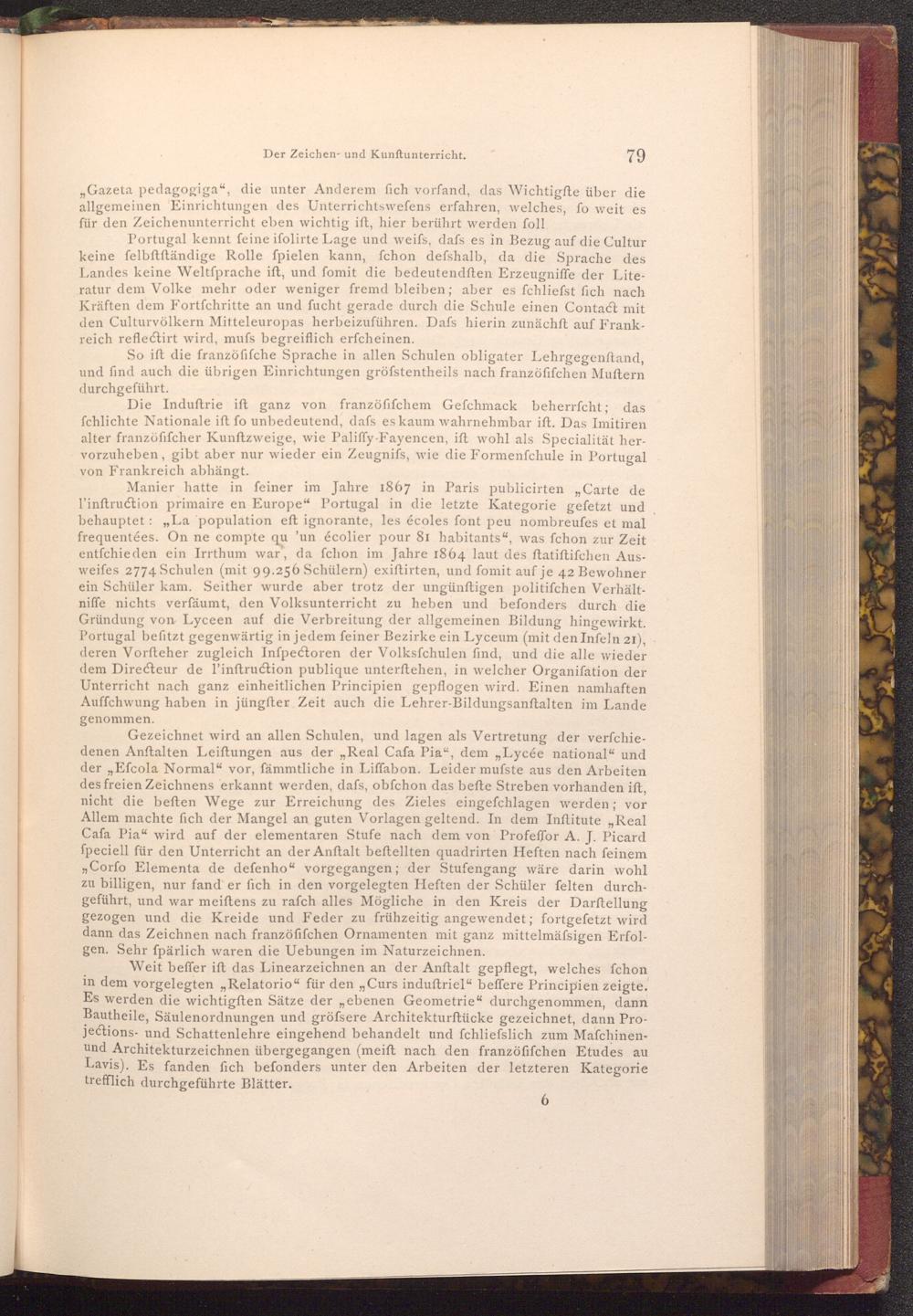 Portugal kennt feine ifolirte Lage und weifs, dafs es in Bezug auf die Cultur keine felbftftändige Rolle spielen kann, fchon defshalb, da die Sprache des Landes keine Weltfprache ift, und fomit die bedeutendften Erzeugniffe der Literatur dem Volke mehr oder weniger fremd bleiben; aber es fchliefst fich nach Kräften dem Fortfchritte an und fucht gerade durch die Schule einen Contact mit den Culturvölkern Mitteleuropas herbeizuführen. Dafs hierin zunächft auf Frankreich reflectirt wird, mufs begreiflich erfcheinen.