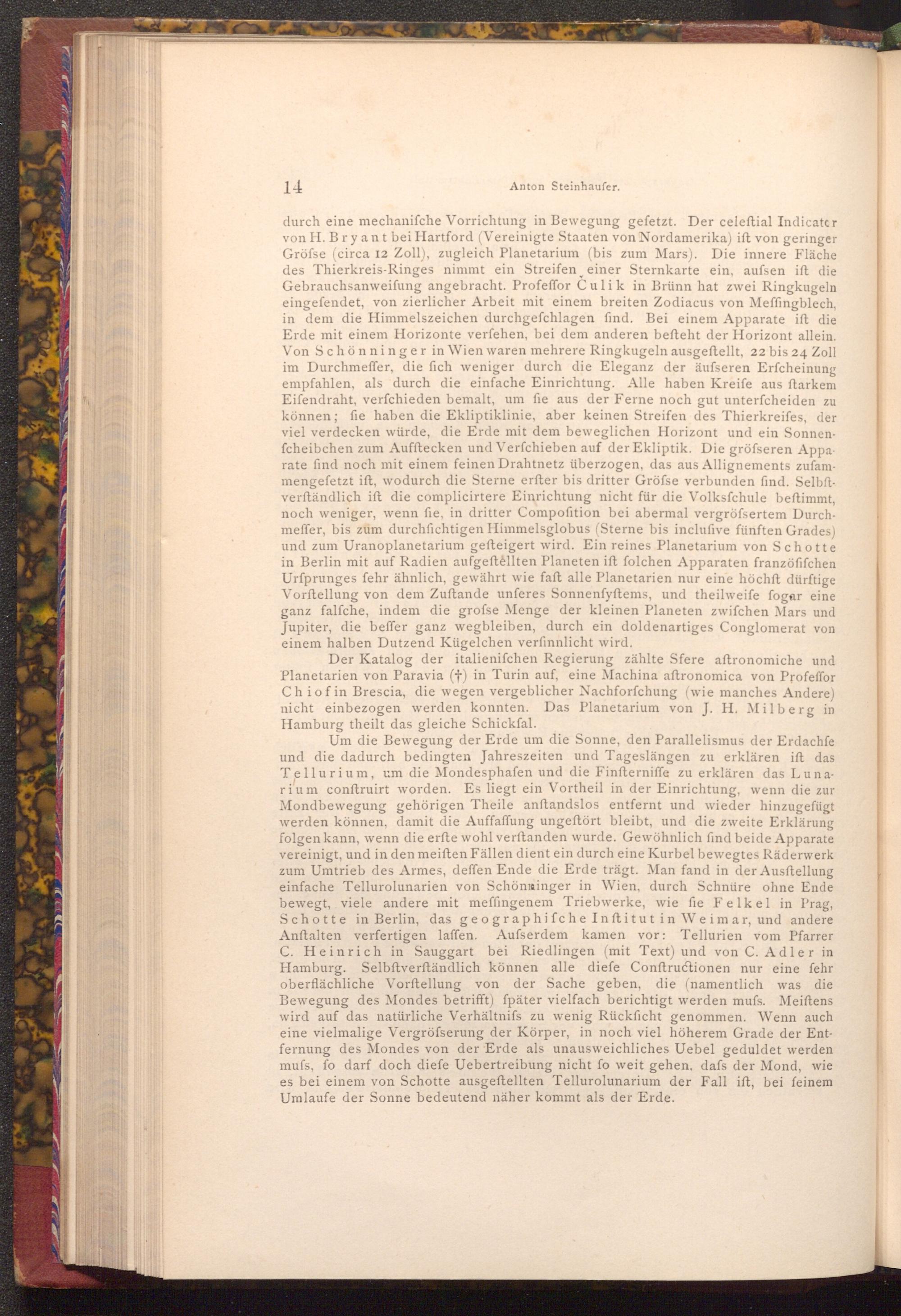 Der Katalog der italienifchen Regierung zählte Sfere aftronomiche und Planetarien von Paravia(+) in Turin auf, eine Machina aftronomica von Profeffor Chiofin Brescia, die wegen vergeblicher Nachforschung( wie manches Andere) nicht einbezogen werden konnten. Das Planetarium von J. H. Milberg in Hamburg theilt das gleiche Schickfal.