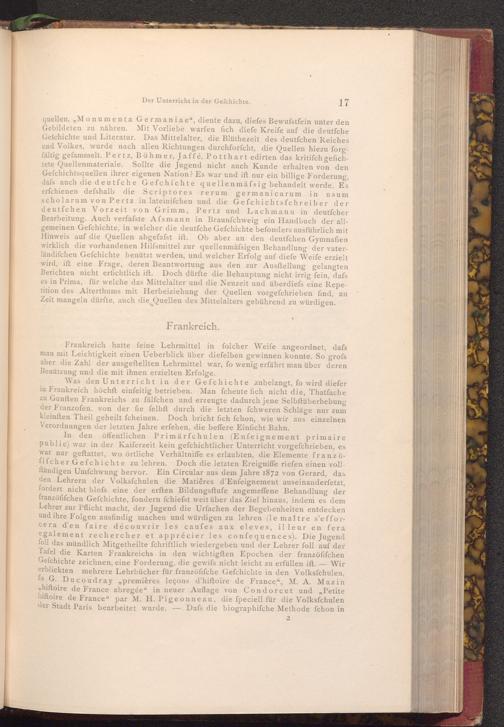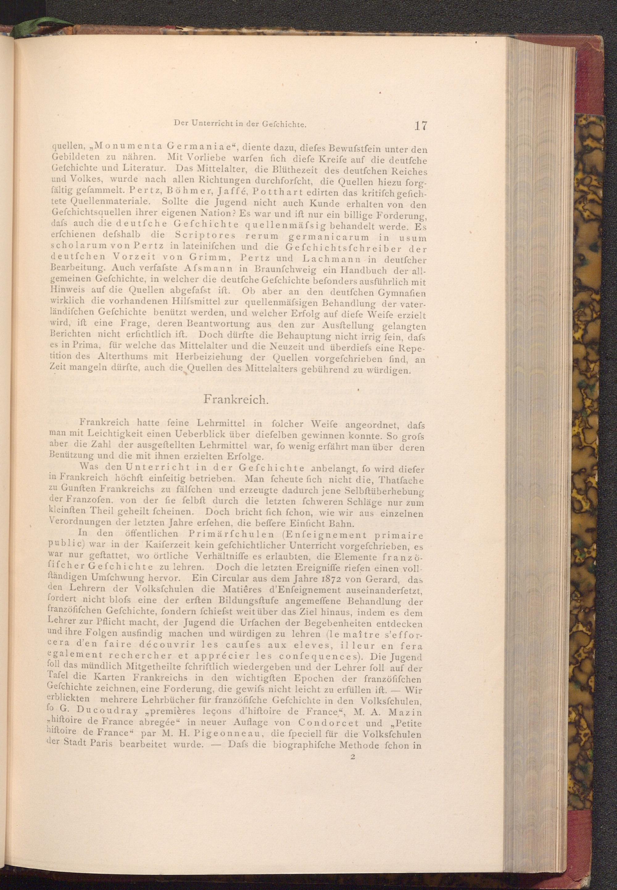 Was den Unterricht in der Gefchichte anbelangt, fo wird diefer in Frankreich höchft einfeitig betrieben. Man fcheute fich nicht die, Thatfache zu Gunsten Frankreichs zu fälfchen und erzeugte dadurch jene Selbftüberhebung der Franzofen, von der fie felbft durch die letzten fchweren Schläge nur zum kleinften Theil geheilt fcheinen. Doch bricht fich fchon, wie wir aus einzelnen Verordnungen der letzten Jahre erfehen, die beffere Einficht Bahn.