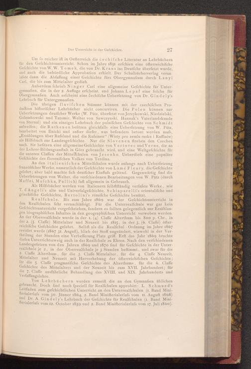 Aufserdem fchrieb Ninger Carl eine allgemeine Gefchichte für Untergymnafien, die in der 2. Auflage erfcheint, und Johann Le pař eine folche für Obergymnafien. Auch erfcheint eine čechifche Ueberfetzung von Dr. Gindely's Lehrbuch für Untergymnafien.