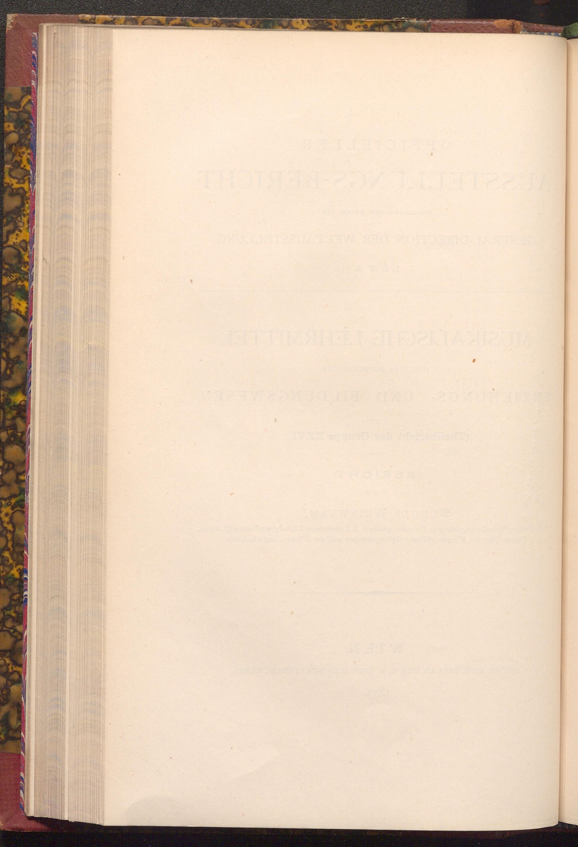 Musikalische Lehrmittel und das musikalische Erziehungs- und Bildungswesen : (Theilbericht der Gruppe XXVI) ; Bericht / von Rudolf Weinwurm, Prof. an der k.k. Lehrerinen-Bildungsanst. zu St. Anna