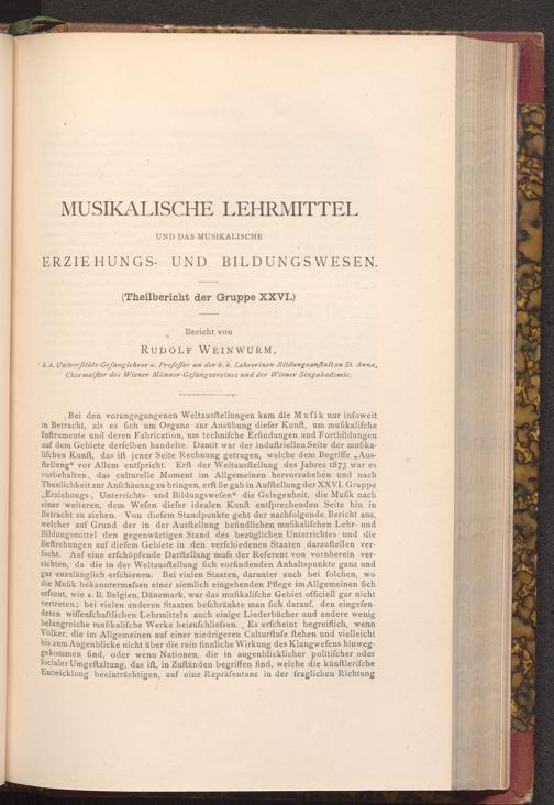 Bei den vorangegangenen Weltausftellungen kam die Mufik nur infoweit. in Betracht, als es fich um Organe zur Ausübung diefer Kunft, um mufikalifche Inftrumente und deren Fabrication, um techniſche Erfindungen und Fortbildungen auf dem Gebiete derfelben handelte. Damit war der induftriellen Seite der mufikalifchen Kunft, das ift jener Seite Rechnung getragen, welche dem Begriffe„ Ausftellung" vor Allem entſpricht. Erft der Weltausftellung des Jahres 1873 war es vorbehalten, das culturelle Moment im Allgemeinen hervorzuheben und nach Thunlichkeit zur Anfchauung zu bringen, erft fie gab in Aufftellung der XXVI. Gruppe „ Erziehungs-, Unterrichts- und Bildungswefen" die Gelegenheit, die Mufik nach einer weiteren, dem Wefen diefer idealen Kunft entſprechenden Seite hin in Betracht zu ziehen. Von diefem Standpunkte geht der nachfolgende. Bericht aus, welcher auf Grund der in der Ausftellung befindlichen mufikalifchen Lehr- und Bildungsmittel den gegenwärtigen Stand des bezüglichen Unterrichtes und die Beftrebungen auf diefem Gebiete in den verfchiedenen Staaten darzuftellen verfucht. Auf eine erfchöpfende Darstellung mufs der Referent von vornherein verzichten, da die in der Weltausftellung fich vorfindenden Anhaltspunkte ganz und gar unzulänglich erfchienen. Bei vielen Staaten, darunter auch bei folchen, wo die Mufik bekanntermafsen einer ziemlich eingehenden Pflege im Allgemeinen fich erfreut, wie z. B. Belgien, Dänemark, war das mufikalifche Gebiet officiell gar nicht vertreten; bei vielen anderen Staaten befchränkte man fich darauf, den eingefendeten wiffenfchaftlichen Lehrmitteln auch einige Liederbücher und andere wenig belangreiche mufikalifche Werke beizufchliefsen. Es erfcheint begreiflich, wenn Völker, die im Allgemeinen auf einer niedrigeren Culturftufe ftehen und vielleicht bis zum Augenblicke nicht über die rein finnliche Wirkung des Klangwefens hinweggekommen find, oder wenn Nationen, die in augenblicklicher politifcher oder focialer Umgeftaltung, das ift, in Zuftänden begriffen find, welche die künftlerifche Entwicklung beeinträchtigen, auf eine Repräsentanz in der fraglichen Richtung