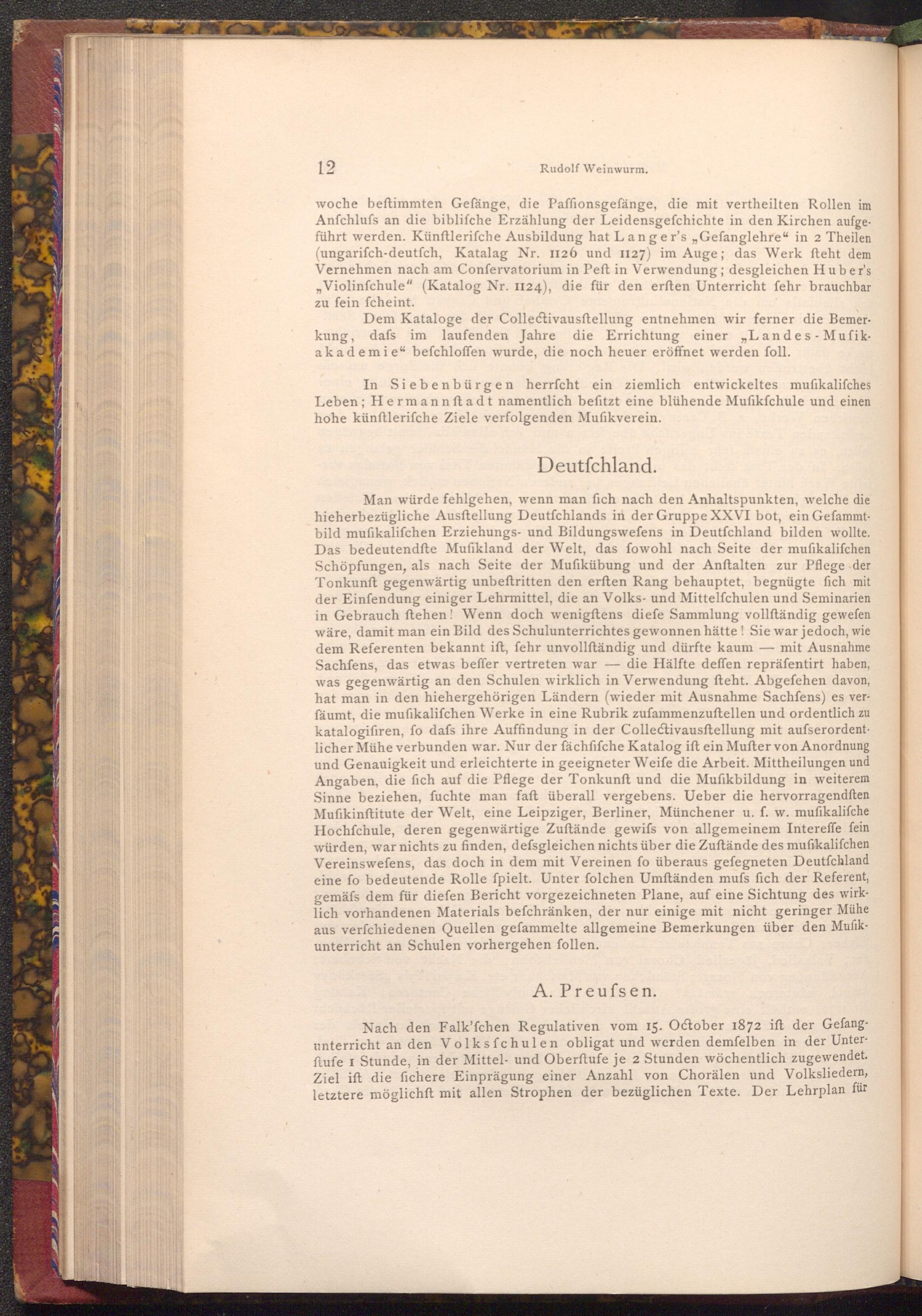 woche beftimmten Gefänge, die Paffionsgefänge, die mit vertheilten Rollen im Anfchlufs an die biblifche Erzählung der Leidensgefchichte in den Kirchen aufgeführt werden. Künftlerifche Ausbildung hat Langer's, Gefanglehre" in 2 Theilen ( ungarifch- deutfch, Katalag Nr. 1126 und 1127) im Auge; das Werk fteht dem Vernehmen nach am Confervatorium in Peft in Verwendung; desgleichen Huber's Violinfchule"( Katalog Nr. 1124), die für den erften Unterricht fehr brauchbar zu fein fcheint.
