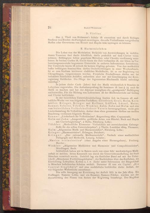 Tifchler:" Methodifche Elementar Violinfchule mit ausreichendem Uebungsftoffe für die erften Unterrichtsjahre", 3 Theile, Landshut 1869, Thomann; Helm:„ Allgemeine Mufik- und Harmonielehre", Nürnberg, Löhe; Krieger: ,, Harmonielehre", Erlangen, Deichert;