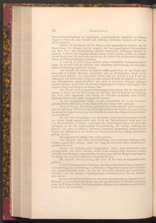 In den katholifchen Schulen find die durch das Gefangbuch vorgefchriebenen Melodien von zwei Werktags- Meffen und der zum Mitfingen der Kinder geeigneten Sonn- und Feftags- Lieder, der Vefperpfalmen, Hymnen und Antiphonien und Cafuallieder( etwa 36) einzuüben.