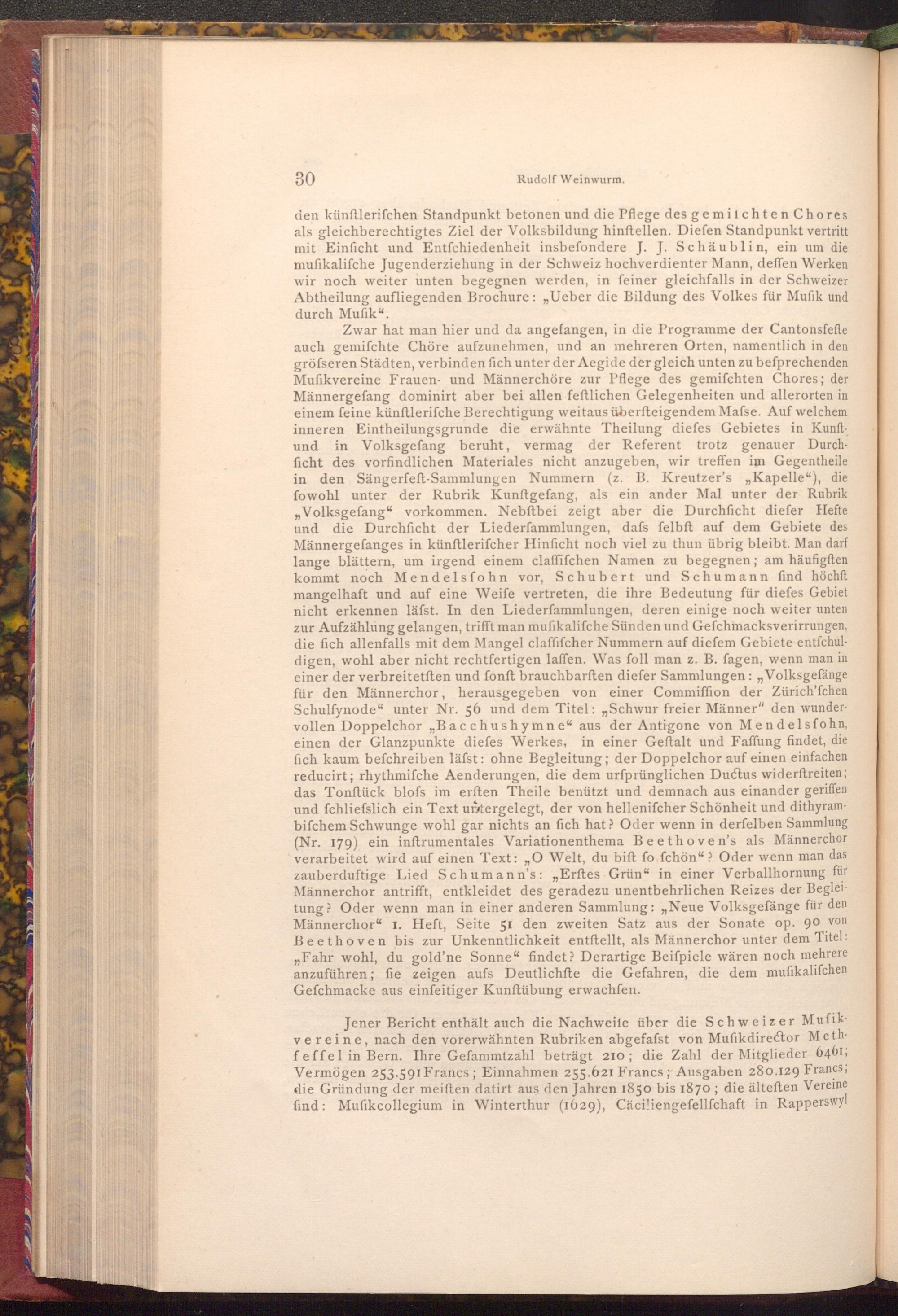 Jener Bericht enthält auch die Nachweite über die Schweizer Mufikvereine, nach den vorerwähnten Rubriken abgefafst von Mufikdirector Methfeffel in Bern. Ihre Gefammtzahl beträgt 210; die Zahl der Mitglieder 6461; Vermögen 253.591 Francs; Einnahmen 255.621 Francs; Ausgaben 280.129 Francs; die Gründung der meiſten datirt aus den Jahren 1850 bis 1870; die älteften Vereine find: Mufikcollegium in Winterthur( 1629), Cäciliengefellfchaft in Rapperswyl