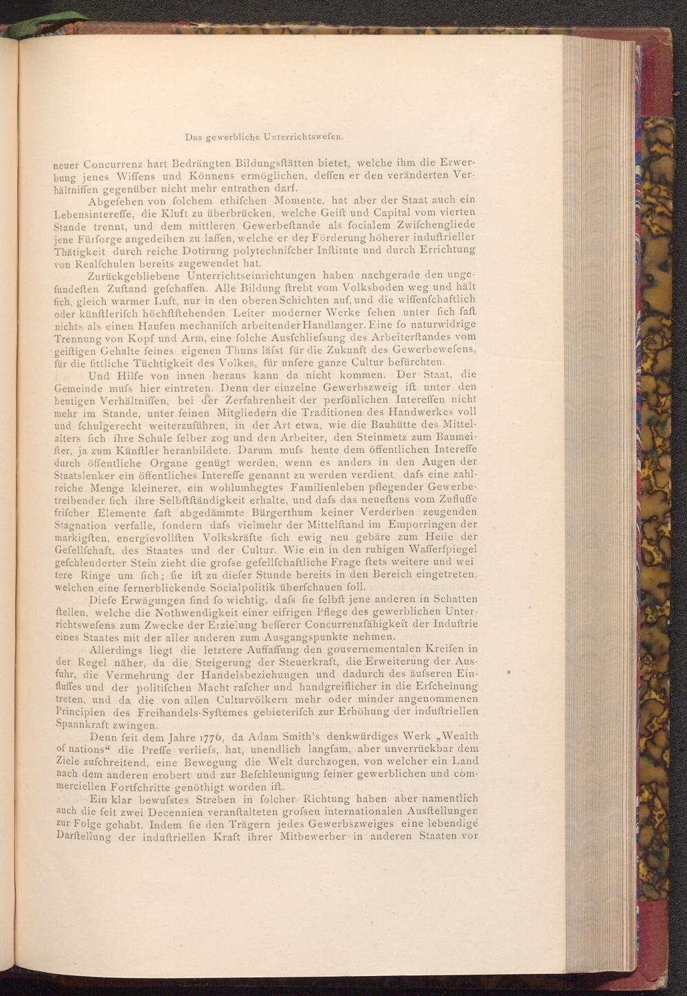 Denn feit dem Jahre 1776, da Adam Smith's denkwürdiges Werk ,, Wealth of nations" die Preffe verliefs, hat, unendlich langfam, aber unverrückbar dem Ziele zufchreitend, eine Bewegung die Welt durchzogen, von welcher ein Land nach dem anderen erobert und zur Befchleunigung feiner gewerblichen und commerciellen Fortfchritte genöthigt worden ift.