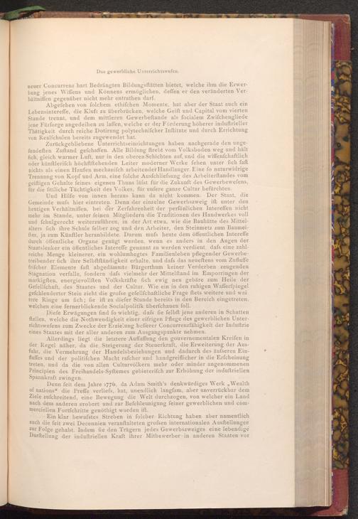 Diefe Erwägungen find fo wichtig, dafs fie felbft jene anderen in Schatten ftellen, welche die Nothwendigkeit einer eifrigen Pflege des gewerblichen Unterrichtswefens zum Zwecke der Erzielung befferer Concurrenzfähigkeit der Induftrie eines Staates mit der aller anderen zum Ausgangspunkte nehmen.