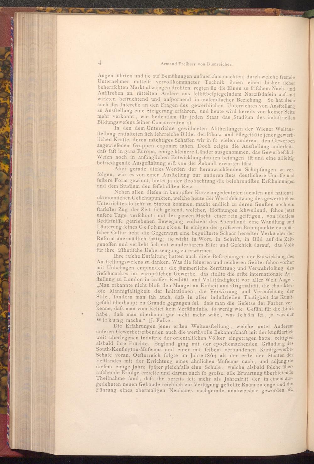 Die Erfahrungen jener erften Weltausftellung, welche unter Anderem unferen Gewerbetreibenden auch die werthvolle Bekanntfchaft mit der künftlerifch weit überlegenen Induſtrie der orientalifchen Völker eingetragen hatte, zeitigten alsbald ihre Früchte. England ging mit der epochemachenden Gründung des South- Kenfington- Muſeums und einer mit felbem verbundenen KunstgewerbeSchule voran. Oefterreich folgte im Jahre 1864 als der erfte der Staaten des Feftlandes mit der Errichtung eines ähnlichen Muſeums nach, und adjungirte diefem einige Jahre fpäter gleichfalls eine Schule, welche alsbald folche überrafchende Erfolge erzielte und darum auch fo grofse, alle Erwartung überbietende Theilnahme fand, dafs ihr bereits feit mehr als Jahresfrift der in einem ausgedehnten neuen Gebäude reichlich zur Verfügung geftellte Raum zu enge und die Führung eines abermaligen Neubaues nachgerade unabweisbar geworden ift.