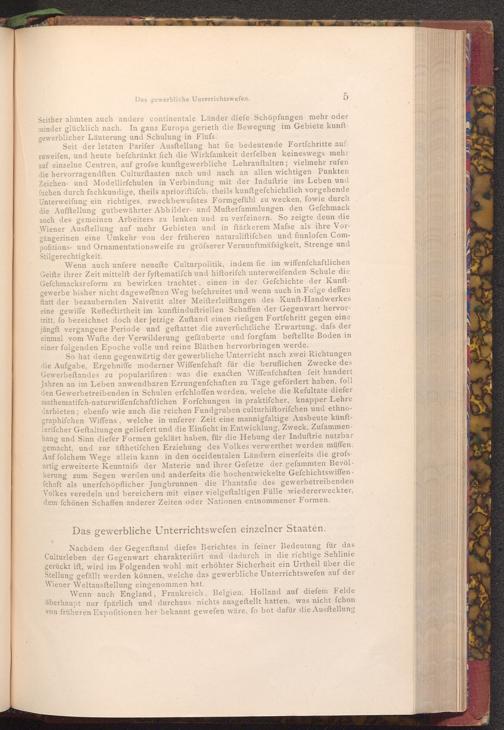Nachdem der Gegenftand diefes Berichtes in feiner Bedeutung für das Culturleben der Gegenwart charakterifirt und dadurch in die richtige Sehlinie gerückt ift, wird im Folgenden wohl mit erhöhter Sicherheit ein Urtheil über die Stellung gefällt werden können, welche das gewerbliche Unterrichtswefen auf der Wiener Weltausftellung eingenommen hat.