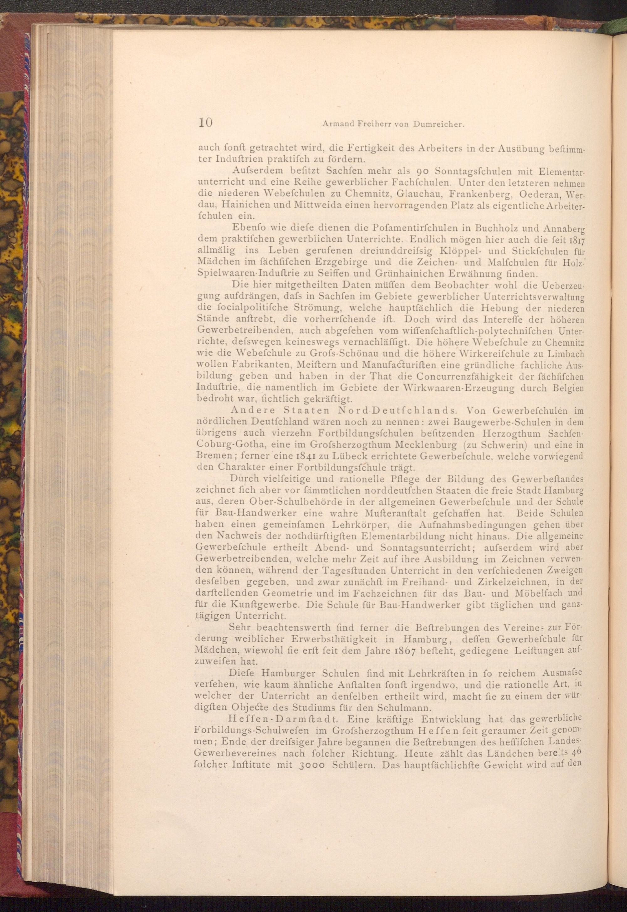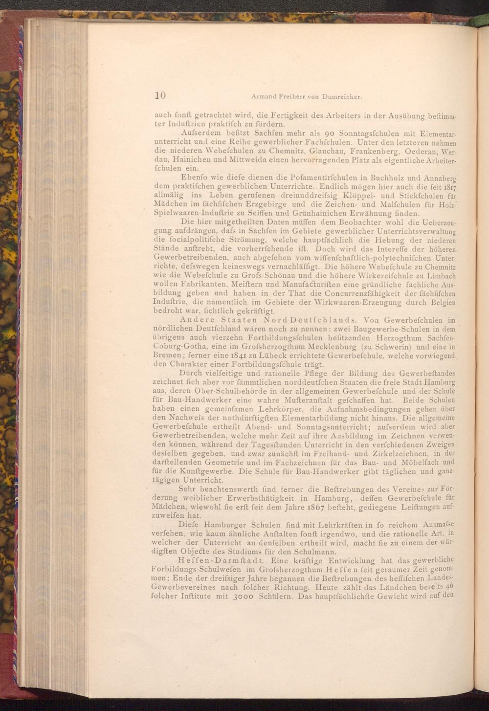 Heffen Darmstadt. Eine kräftige Entwicklung hat das gewerbliche Forbildungs- Schulwefen im Grofsherzogthum Heffen feit geraumer Zeit genommen; Ende der dreifsiger Jahre begannen die Beftrebungen des heffifchen LandesGewerbevereines nach folcher Richtung. Heute zählt das Ländchen bereits 46 folcher Inftitute mit 3000 Schülern. Das hauptfächlichfte Gewicht wird auf den
