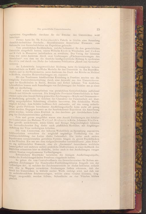 Von preufsifchen Buchhändlern, welche Lehrmittel für den gewerblichen Unterricht ausgeftellt hatten, wären Wilhelm Roth in Wiesbaden und Cohen und Rifch in Hannover insbefondere zu erwähnen. Der Verlag der letzteren Firma war unter Anderem durch zwei Lieferungen Flächenverzierungen des Mittelalters" von dem um die deutfche kunftgewerbliche Bildung fo verdienten Herdtle und durch vier Hefte der bekannten Publication, Kunft und Gewerbe" vertreten.