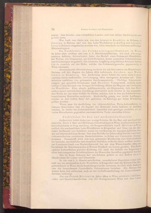 In der vom k. k. Handelsminifterium veranſtalteten Expofition waren defshalb nur die mechanifche Lehr- Werkstätte in Klagenfurt und die Märtens'fche Baugewerkschule in Wien durch Ausftellungsobjecte vertreten, da blofs diefe Anftalten von der bezeichneten Centralftelle Subventionen beziehen.
