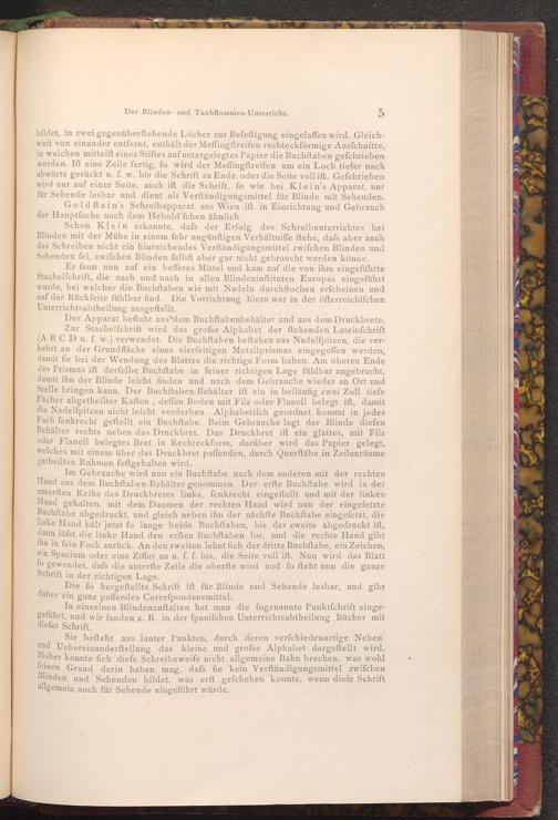 Schon Klein erkannte, dafs der Erfolg des Schreibunterrichtes bei Blinden mit der Mühe in einem fehr ungünftigen Verhältniffe ftehe, dafs aber auch das Schreiben nicht ein hinreichendes Verftändigungsmittel zwifchen Blinden und Sehenden fei, zwifchen Blinden felbft aber gar nicht gebraucht werden könne.