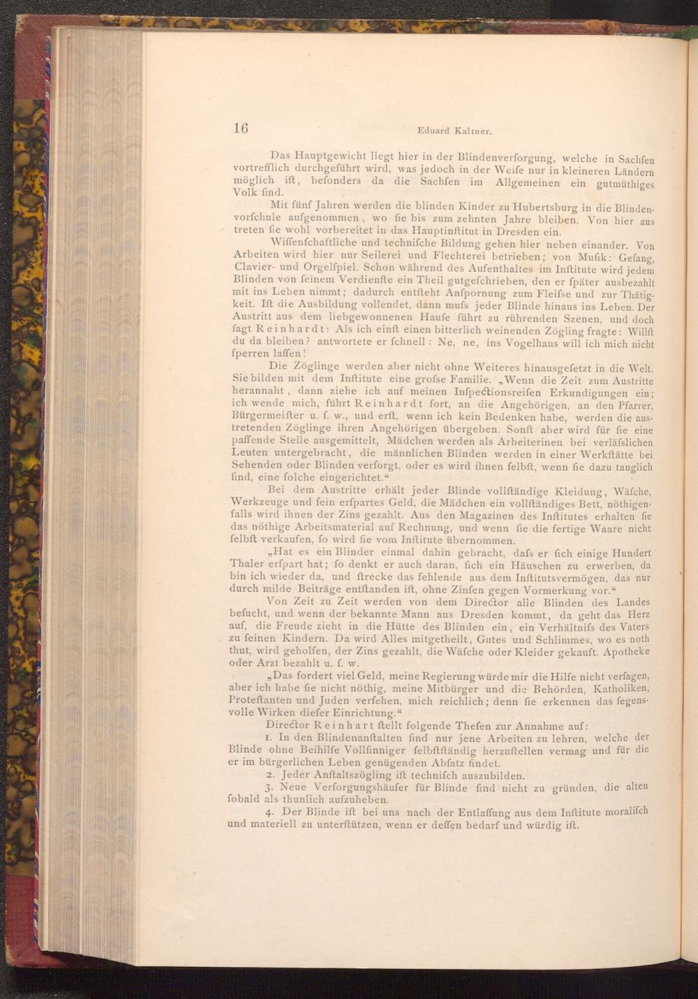 Das Hauptgewicht liegt hier in der Blindenverforgung, welche in Sachfen vortrefflich durchgeführt wird, was jedoch in der Weife nur in kleineren Ländern möglich ift, befonders da die Sachfen im Allgemeinen ein gutmüthiges