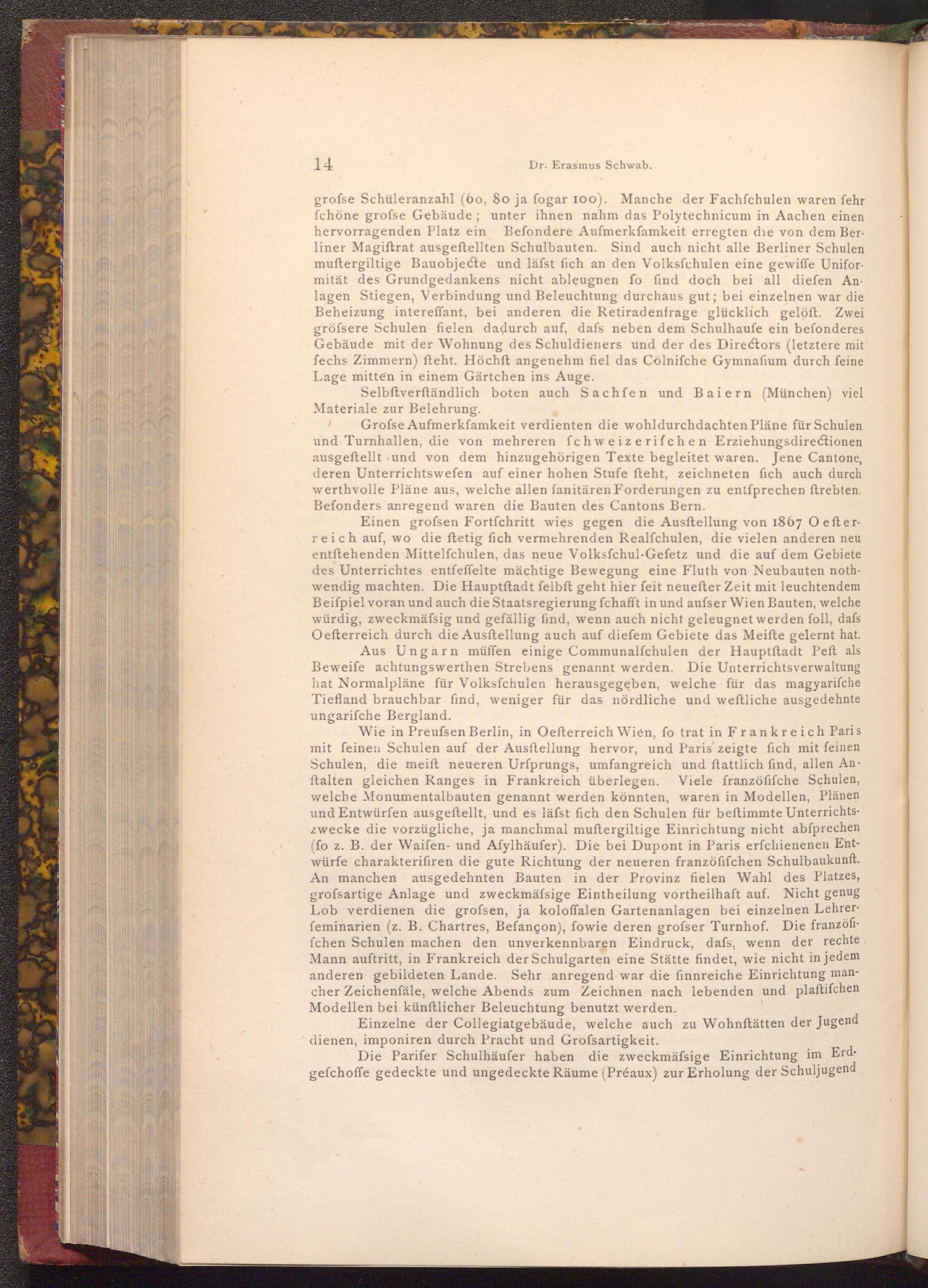 Grofse Aufmerkfamkeit verdienten die wohldurchdachten Pläne für Schulen und Turnhallen, die von mehreren fchweizerifchen Erziehungsdirectionen ausgeftellt und von dem hinzugehörigen Texte begleitet waren. Jene Cantone, deren Unterrichtswefen auf einer hohen Stufe fteht, zeichneten fich auch durch werthvolle Pläne aus, welche allen fanitären Forderungen zu entfprechen ftrebten. Befonders anregend waren die Bauten des Cantons Bern.