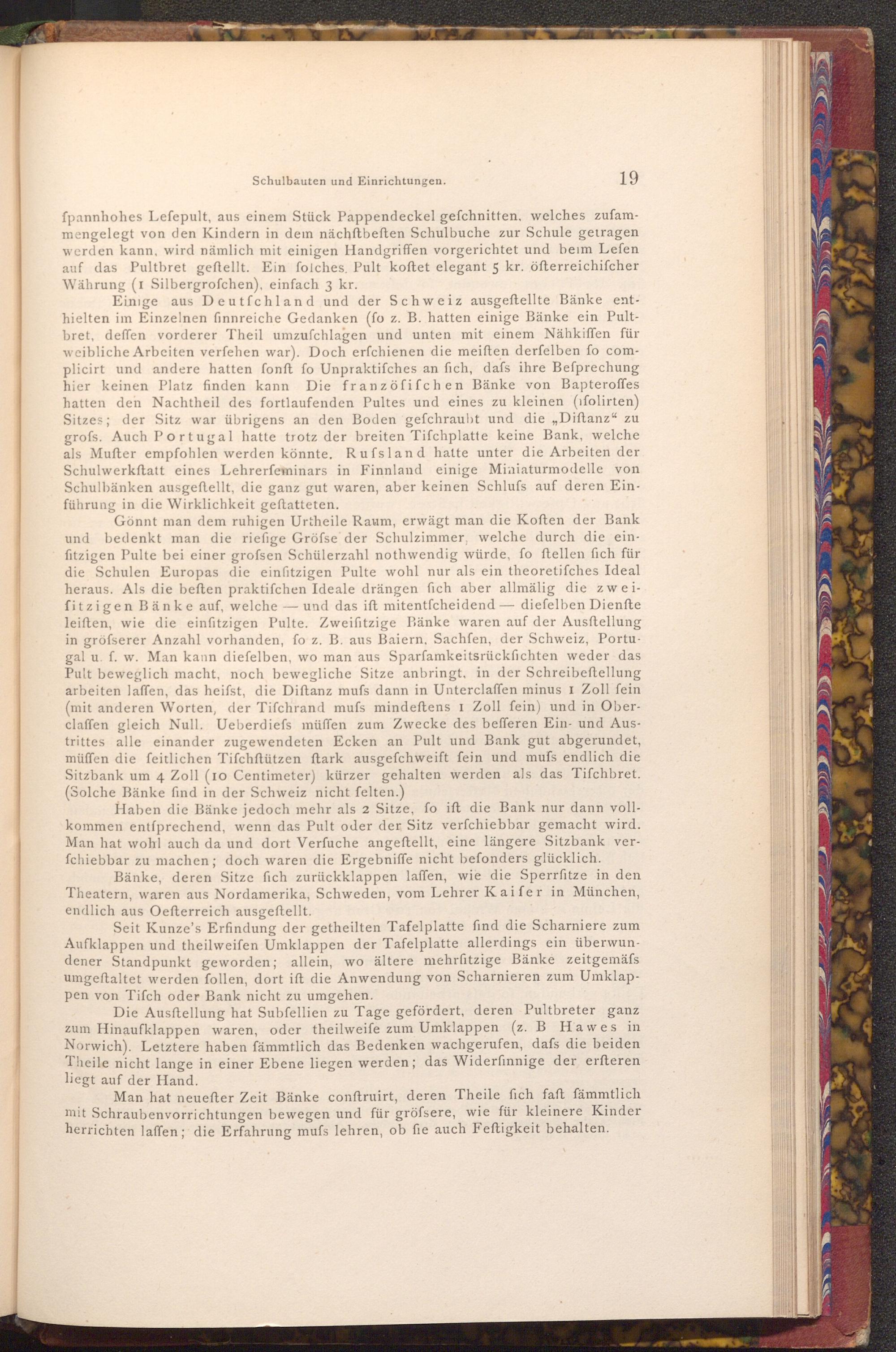 Bänke, deren Sitze fich zurückklappen laffen, wie die Sperrfitze in den Theatern, waren aus Nordamerika, Schweden, vom Lehrer Kaifer in München, endlich aus Oefterreich ausgeftellt.