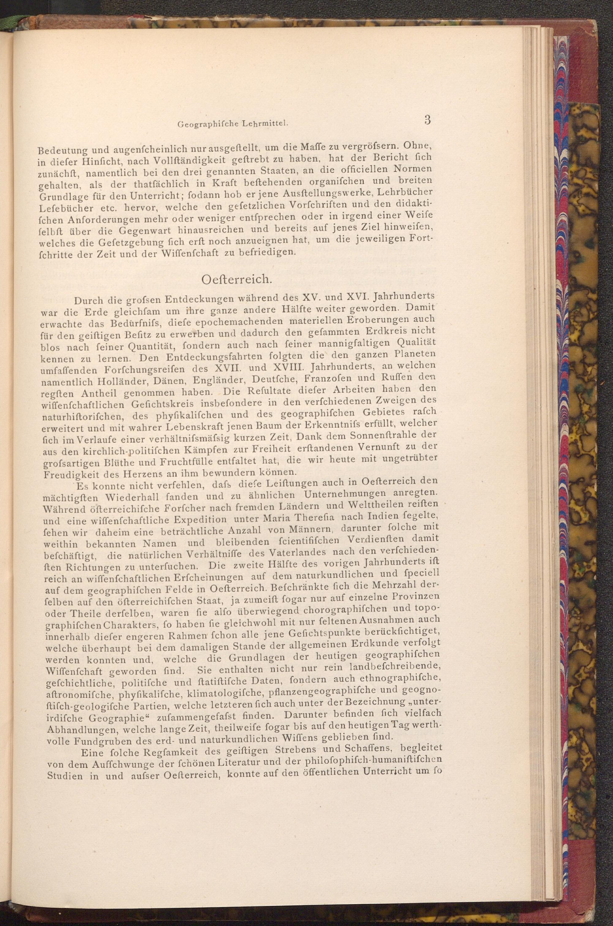 Es konnte nicht verfehlen, dafs diefe Leiftungen auch in Oefterreich den mächtigften Wiederhall fanden und zu ähnlichen Unternehmungen anregten. Während öfterreichifche Forfcher nach fremden Ländern und Welttheilen reiften und eine wiffenfchaftliche Expedition unter Maria Therefia nach Indien fegelte, fehen wir daheim eine beträchtliche Anzahl von Männern, darunter folche mit weithin bekannten Namen und bleibenden fcientififchen Verdienften damit befchäftigt, die natürlichen Verhältniffe des Vaterlandes nach den verfchiedenften Richtungen zu unterfuchen. Die zweite Hälfte des vorigen Jahrhunderts ift reich an wiffenfchaftlichen Erfcheinungen auf dem naturkundlichen und ſpeciell auf dem geographifchen Felde in Oefterreich. Befchränkte fich die Mehrzahl derfelben auf den öfterreichifchen Staat, ja zumeift fogar nur auf einzelne Provinzen oder Theile derfelben, waren fie alfo überwiegend chorographifchen und topographifchen Charakters, fo haben fie gleichwohl mit nur feltenen Ausnahmen auch innerhalb diefer engeren Rahmen fchon alle jene Gefichtspunkte berücksichtiget, welche überhaupt bei dem damaligen Stande der allgemeinen Erdkunde verfolgt werden konnten und, welche die Grundlagen der heutigen geographifchen Wiffenfchaft geworden find. Sie enthalten nicht nur rein landbefchreibende, gefchichtliche, politifche und ftatiftifche Daten, fondern auch ethnographifche, aftronomifche, phyfikalifche, klimatologifche, pflanzengeographifche und geognoftifch- geologiſche Partien, welche letzteren fich auch unter der Bezeichnung„ unterirdifche Geographie" zufammengefafst finden. Darunter befinden fich vielfach Abhandlungen, welche lange Zeit, theilweife fogar bis auf den heutigen Tag werthvolle Fundgruben des erd- und naturkundlichen Wiffens geblieben find.