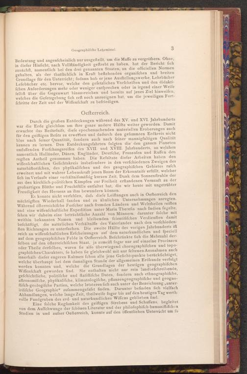 Durch die grofsen Entdeckungen während des XV. und XVI. Jahrhunderts war die Erde gleichfam um ihre ganze andere Hälfte weiter geworden. Damit erwachte das Bedürfnifs, diefe epochemachenden materiellen Eroberungen auch für den geiftigen Befitz zu erwerben und dadurch den gefammten Erdkreis nicht blos nach feiner Quantität, fondern auch nach feiner mannigfaltigen Qualität kennen zu lernen. Den Entdeckungsfahrten folgten die den ganzen Planeten umfaffenden Forfchungsreifen des XVII. und XVIII. Jahrhunderts, an welchen namentlich Holländer, Dänen, Engländer, Deutfche, Franzofen und Ruffen den regften Antheil genommen haben. Die Refultate diefer Arbeiten haben den wiffenfchaftlichen Gefichtskreis insbefondere in den verfchiedenen Zweigen des naturhiftorifchen, des phyfikalifchen und des geographifchen Gebietes rafch erweitert und mit wahrer Lebenskraft jenen Baum der Erkenntnifs erfüllt, welcher fich im Verlaufe einer verhältnifsmäfsig kurzen Zeit, Dank dem Sonnenftrahle der aus den kirchlich- politifchen Kämpfen zur Freiheit erftandenen Vernunft zu der grofsartigen Blüthe und Fruchtfülle entfaltet hat, die wir heute mit ungetrübter Freudigkeit des Herzens an ihm bewundern können.