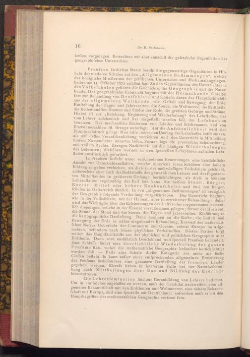 Die Lehrerfeminarien find zur Heranbildung von Lehrern beftimmt. Um in ein folches zugelaffen zu werden, mufs der Candidat nachweifen, eine allgemeine Bekanntfchaft mit den Erdtheilen und Weltmeeren, eine nähere Bekanntfchaft mit Europa, und eine fpecielle mit Deutfchland; aufserdem mufs er mit den Hauptbegriffen der mathematifchen Geographie vertraut fein.