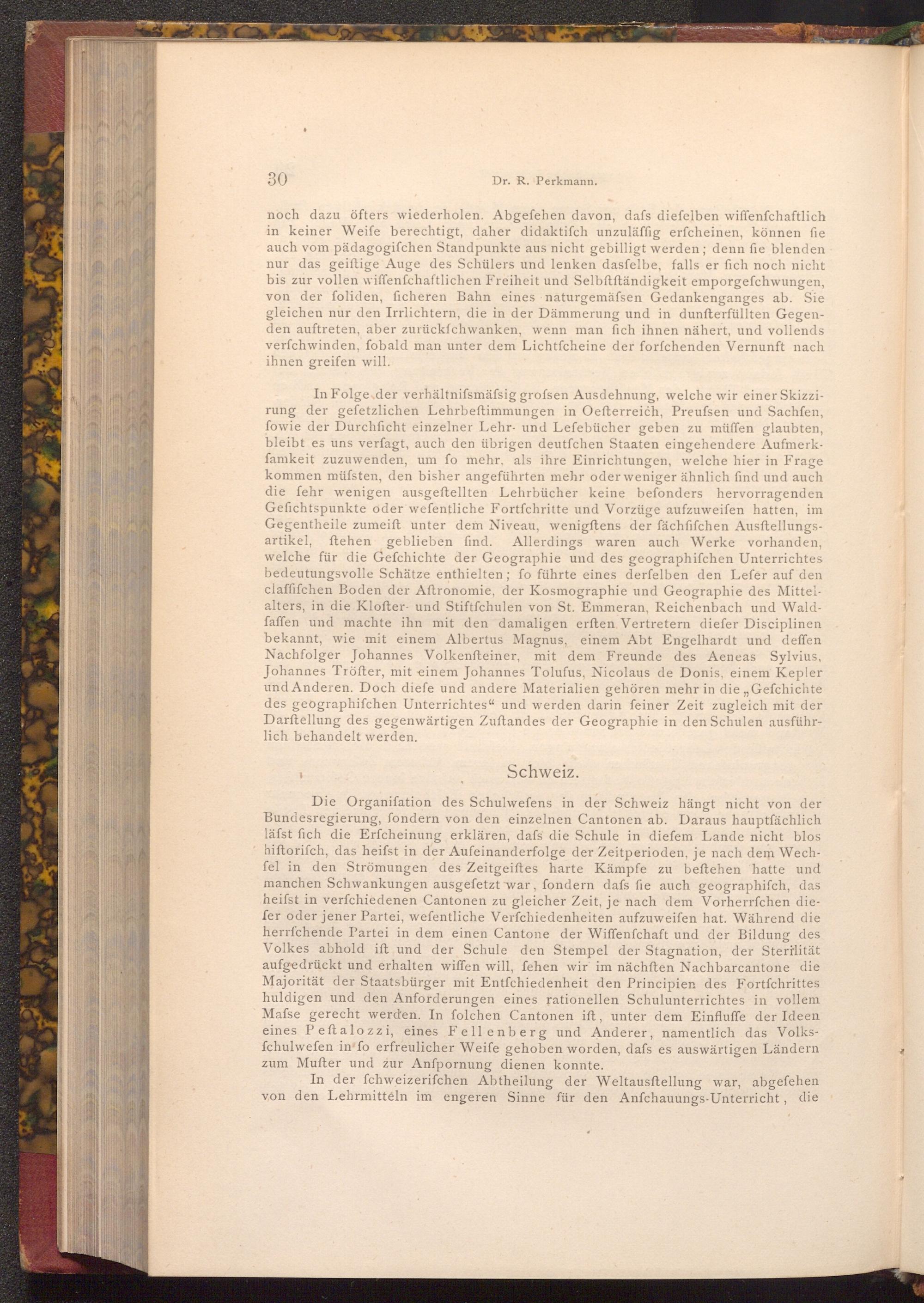Die Organiſation des Schulwefens in der Schweiz hängt nicht von der Bundesregierung, fondern von den einzelnen Cantonen ab. Daraus hauptfächlich läfst fich die Erfcheinung erklären, dafs die Schule in diefem Lande nicht blos hiftorifch, das heifst in der Aufeinanderfolge der Zeitperioden, je nach dem Wechfel in den Strömungen des Zeitgeiftes harte Kämpfe zu beftehen hatte und manchen Schwankungen ausgefetzt war, fondern dafs fie auch geographifch, das heifst in verfchiedenen Cantonen zu gleicher Zeit, je nach dem Vorherrschen diefer oder jener Partei, wefentliche Verfchiedenheiten aufzuweifen hat. Während die herrfchende Partei in dem einen Cantone der Wiffenfchaft und der Bildung des Volkes abhold ift und der Schule den Stempel der Stagnation, der Sterilität aufgedrückt und erhalten wiffen will, fehen wir im nächften Nachbarcantone die Majorität der Staatsbürger mit Entfchiedenheit den Principien des Fortfchrittes huldigen und den Anforderungen eines rationellen Schulunterrichtes in vollem Mafse gerecht werden. In folchen Cantonen ift, unter dem Einfluffe der Ideen eines Pestalozzi, eines Fellenberg und Anderer, namentlich das Volksfchulwefen in fo erfreulicher Weife gehoben worden, dafs es auswärtigen Ländern zum Mufter und zur Anfpornung dienen konnte.