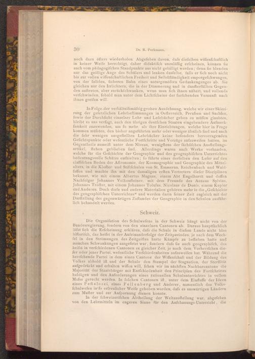 In Folge der verhältnifsmäfsig grofsen Ausdehnung, welche wir einer Skizzirung der gefetzlichen Lehrbeftimmungen in Oefterreich, Preufsen und Sachfen, fowie der Durchficht einzelner Lehr- und Lefebücher geben zu müffen glaubten, bleibt es uns verfagt, auch den übrigen deutfchen Staaten eingehendere Aufmerkfamkeit zuzuwenden, um fo mehr, als ihre Einrichtungen, welche hier in Frage kommen müfsten, den bisher angeführten mehr oder weniger ähnlich find und auch die fehr wenigen ausgeftellten Lehrbücher keine befonders hervorragenden Gefichtspunkte oder wefentliche Fortfchritte und Vorzüge aufzuweifen hatten, im Gegentheile zumeift unter dem Niveau, wenigftens der fächfifchen Ausftellungsartikel, ftehen geblieben find. Allerdings waren auch Werke vorhanden, welche für die Gefchichte der Geographie und des geographifchen Unterrichtes bedeutungsvolle Schätze enthielten; fo führte eines derfelben den Lefer auf den claffifchen Boden der Aftronomie, der Kosmographie und Geographie des Mittelalters, in die Klofter und Stiftfchulen von St. Emmeran, Reichenbach und Waldfaffen und machte ihn mit den damaligen erften Vertretern diefer Disciplinen bekannt, wie mit einem Albertus Magnus, einem Abt Engelhardt und deffen Nachfolger Johannes Volkenfteiner, mit dem Freunde des Aeneas Sylvius, Johannes Tröfter, mit einem Johannes Tolufus, Nicolaus de Donis, einem Kepler und Anderen. Doch diefe und andere Materialien gehören mehr in die„, Gefchichte des geographifchen Unterrichtes" und werden darin feiner Zeit zugleich mit der Darftellung des gegenwärtigen Zuftandes der Geographie in den Schulen ausführlich behandelt werden.