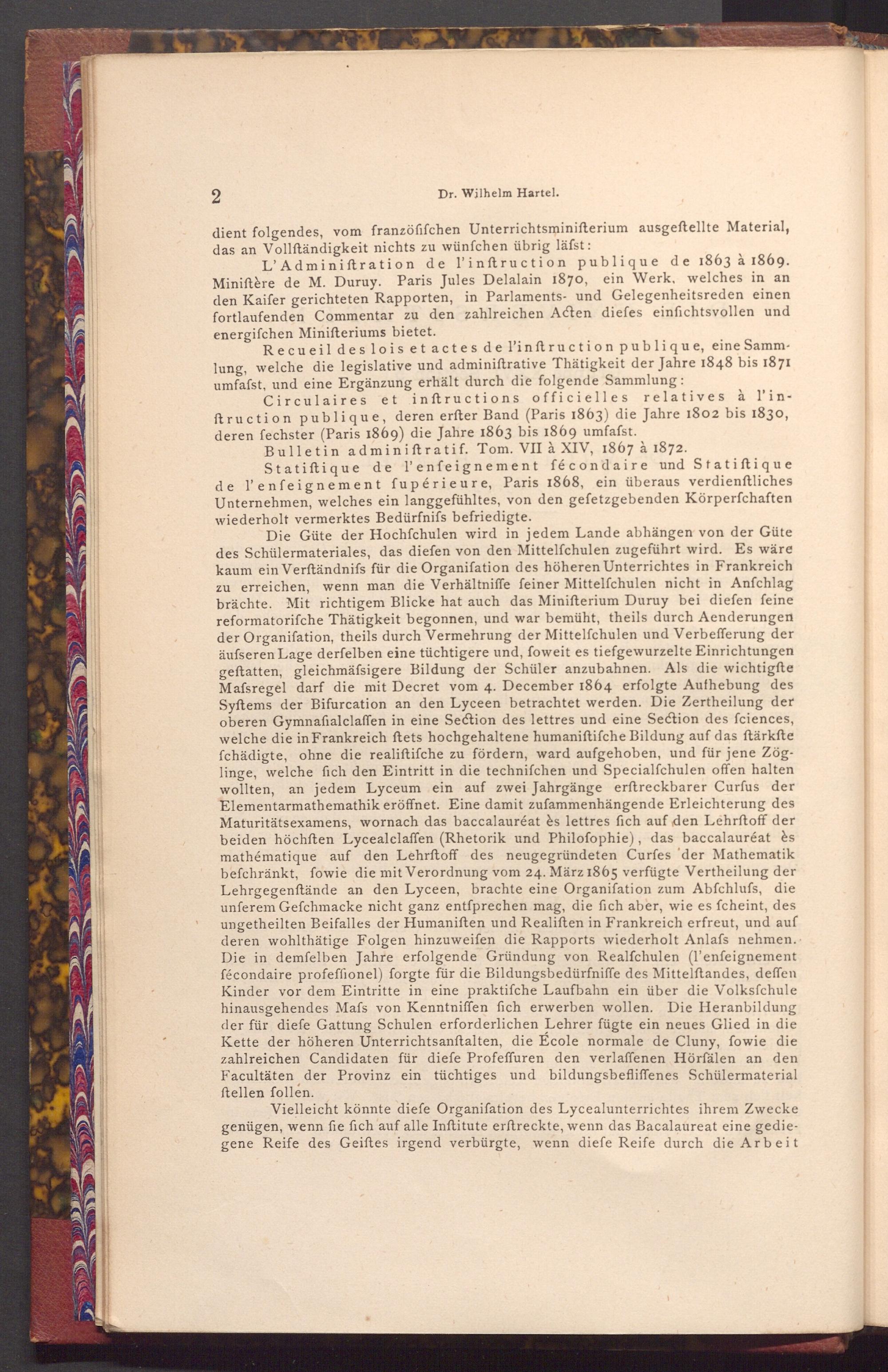 L'Adminiftration de l'inftruction publique de 1863 à 1869. Miniftère de M. Duruy. Paris Jules Delalain 1870, ein Werk, welches in an den Kaifer gerichteten Rapporten, in Parlaments- und Gelegenheitsreden einen fortlaufenden Commentar zu den zahlreichen Acten diefes einfichtsvollen und energifchen Minifteriums bietet.