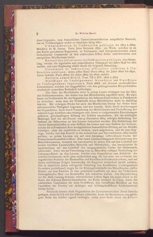 Statiftique de l'enfeignement fécondaire und Statistique de l'enfeignement fupérieure, Paris 1868, ein überaus verdienftliches Unternehmen, welches ein langgefühltes, von den gefetzgebenden Körperfchaften wiederholt vermerktes Bedürfnifs befriedigte.