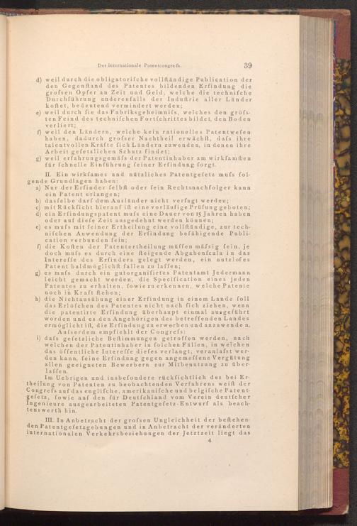 III. In Anbetracht der grofsen Ungleichheit der beftehenden Patentgefetzgebungen und in Anbetracht der veränderten internationalen Verkehrsbeziehungen der Jetztzeit liegt das