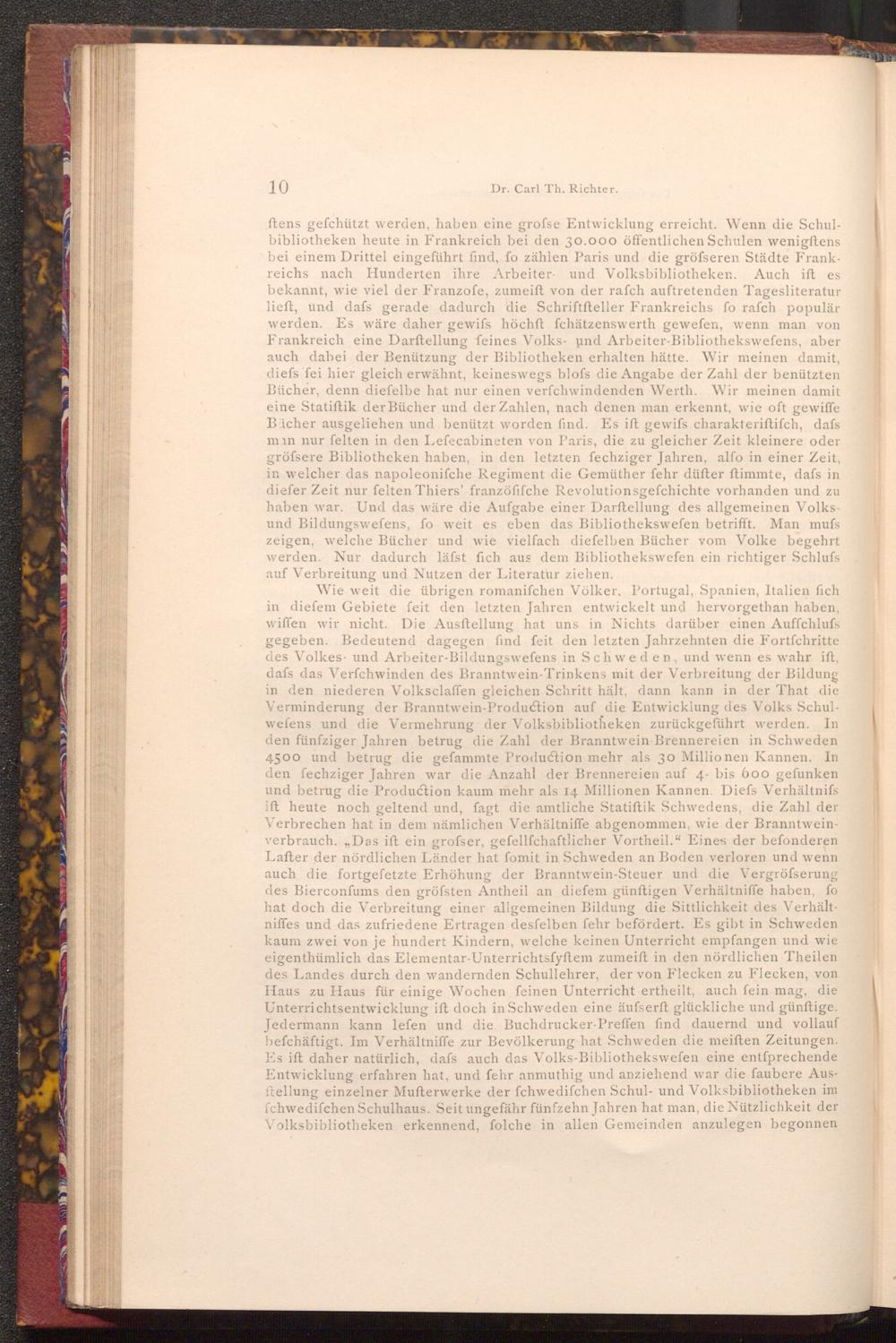 ftens gefchützt werden, haben eine grofse Entwicklung erreicht. Wenn die Schulbibliotheken heute in Frankreich bei den 30.000 öffentlichen Schulen wenigftens bei einem Drittel eingeführt find, fo zählen Paris und die gröfseren Städte Frankreichs nach Hunderten ihre Arbeiter und Volksbibliotheken. Auch ift es bekannt, wie viel der Franzofe, zumeift von der rafch auftretenden Tagesliteratur lieft, und dafs gerade dadurch die Schriftfteller Frankreichs fo rafch populär werden. Es wäre daher gewifs höchft fchätzenswerth gewefen, wenn man von Frankreich eine Darftellung feines Volks- und Arbeiter- Bibliothekswefens, aber auch dabei der Benützung der Bibliotheken erhalten hätte. Wir meinen damit, diefs fei hier gleich erwähnt, keineswegs blofs die Angabe der Zahl der benützten Bücher, denn diefelbe hat nur einen verfchwindenden Werth. Wir meinen damit eine Statiſtik der Bücher und der Zahlen, nach denen man erkennt, wie oft gewiffe Bücher ausgeliehen und benützt worden find. Es ift gewifs charakteriftifch, dafs man nur felten in den Lefecabineten von Paris, die zu gleicher Zeit kleinere oder gröfsere Bibliotheken haben, in den letzten fechziger Jahren, alfo in einer Zeit, in welcher das napoleonifche Regiment die Gemüther fehr düfter ftimmte, dafs in diefer Zeit nur felten Thiers' franzöfifche Revolutionsgefchichte vorhanden und zu haben war. Und das wäre die Aufgabe einer Darftellung des allgemeinen Volksund Bildungswefens, fo weit es eben das Bibliothekswefen betrifft. Man mufs zeigen, welche Bücher und wie vielfach diefelben Bücher vom Volke begehrt werden. Nur dadurch läfst fich aus dem Bibliothekswefen ein richtiger Schlufs auf Verbreitung und Nutzen der Literatur ziehen.
