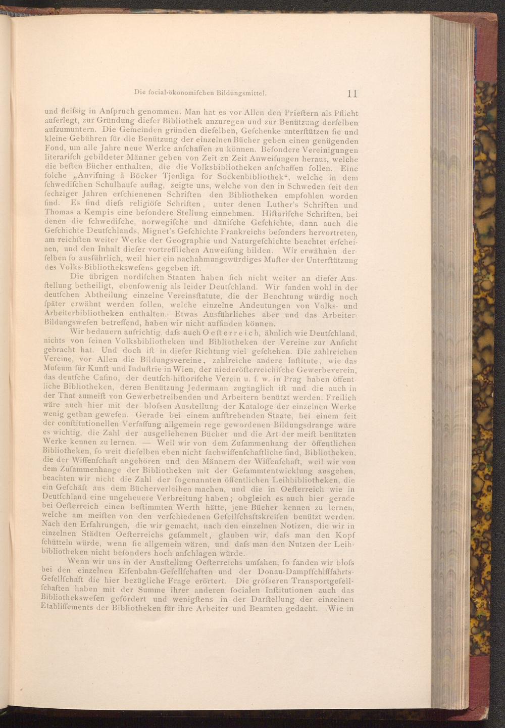 Wenn wir uns in der Ausftellung Oefterreichs umfahen, fo fanden wir blofs bei den einzelnen Eifenbahn- Gefellſchaften und der Donau- Dampffchifffahrts. Gefellſchaft die hier bezügliche Frage erörtert. Die gröfseren Transportgefellfchaften haben mit der Summe ihrer anderen focialen Inftitutionen auch das Bibliothekswefen gefördert und wenigftens in der Darstellung der einzelnen Etabliffements der Bibliotheken für ihre Arbeiter und Beamten gedacht. Wie in