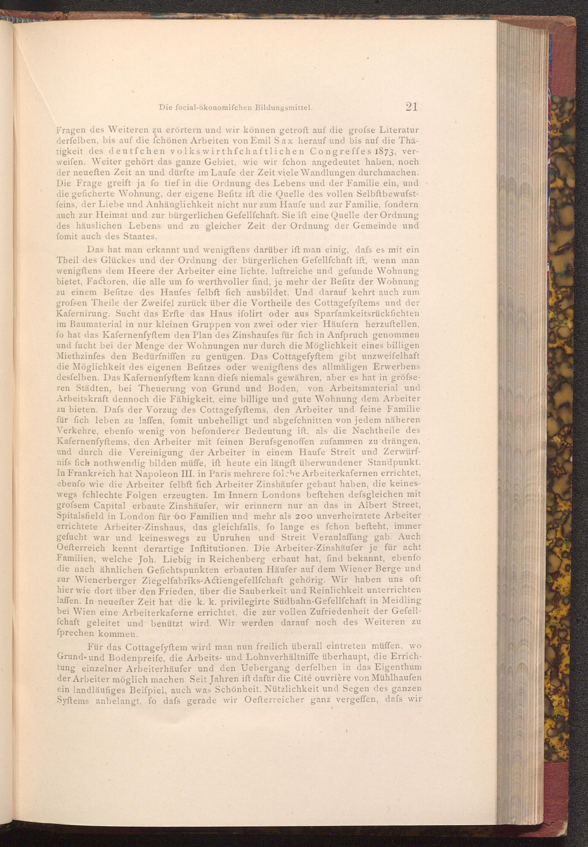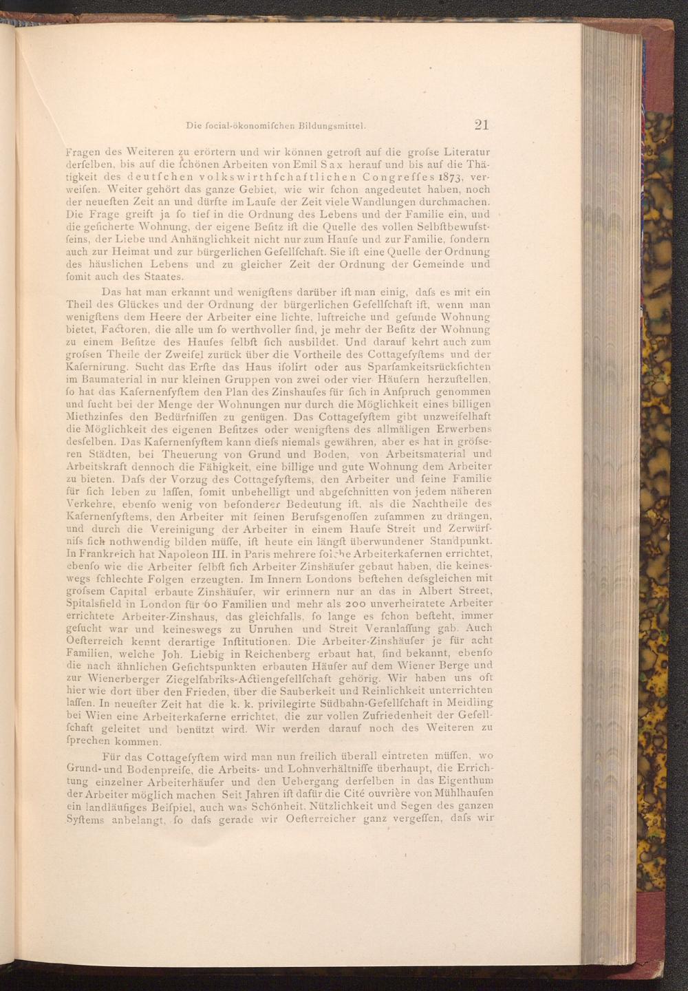 Fragen des Weiteren zu erörtern und wir können getroft auf die grofse Literatur derfelben, bis auf die fchönen Arbeiten von Emil Sax herauf und bis auf die Thätigkeit des deutfchen volkswirthfchaftlichen Congreffes 1873, verweifen. Weiter gehört das ganze Gebiet, wie wir fchon angedeutet haben, noch der neueften Zeit an und dürfte im Laufe der Zeit viele Wandlungen durchmachen. Die Frage greift ja fo tief in die Ordnung des Lebens und der Familie ein, und die geficherte Wohnung, der eigene Befitz ift die Quelle des vollen Selbftbewusstfeins, der Liebe und Anhänglichkeit nicht nur zum Haufe und zur Familie, fondern auch zur Heimat und zur bürgerlichen Gefellſchaft. Sie iſt eine Quelle der Ordnung des häuslichen Lebens und zu gleicher Zeit der Ordnung der Gemeinde und fomit auch des Staates.