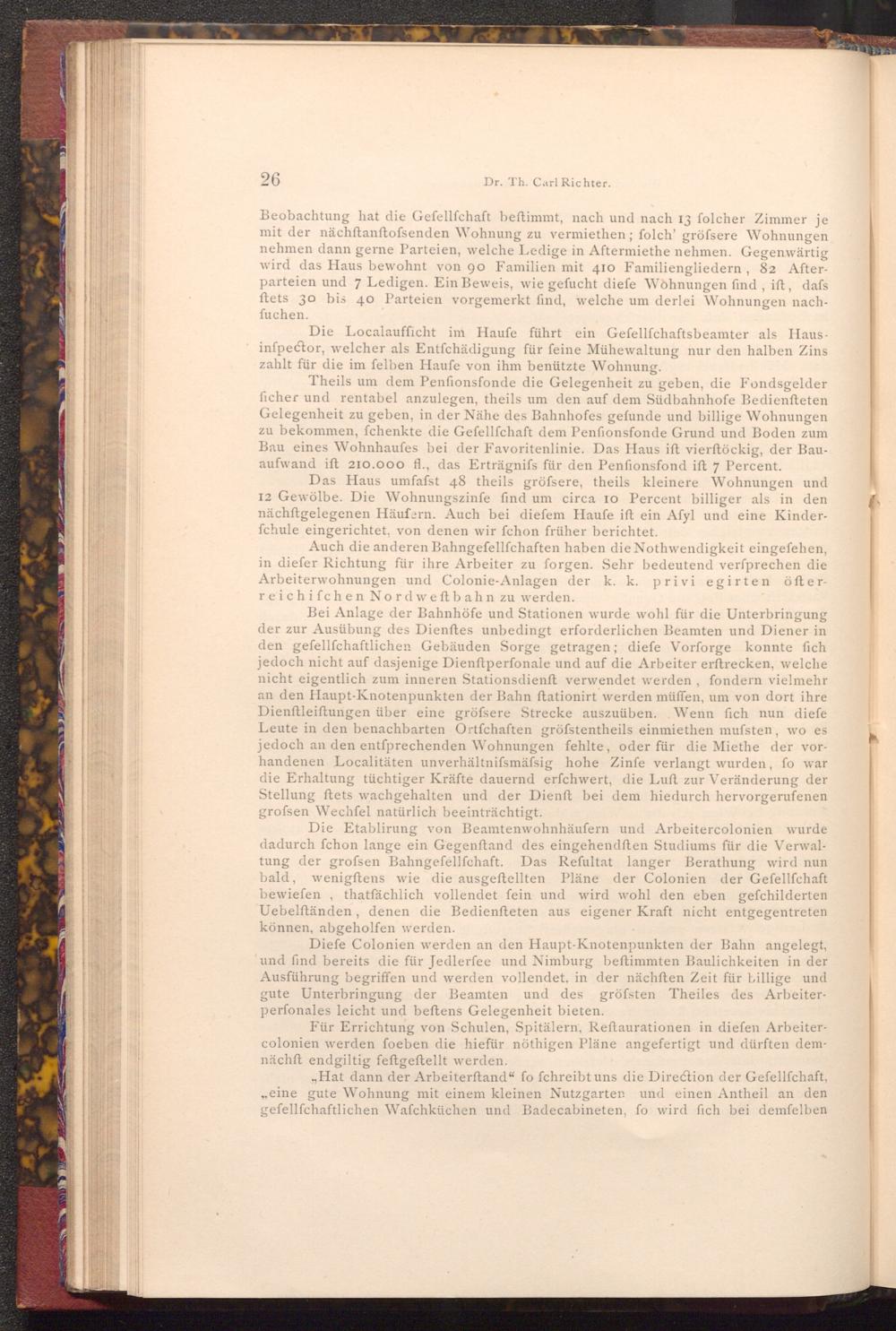 Die Etablirung von Beamtenwohnhäufern und Arbeitercolonien wurde dadurch fchon lange ein Gegenftand des eingehendften Studiums für die Verwaltung der grofsen Bahngefellfchaft. Das Refultat langer Berathung wird nun bald, wenigftens wie die ausgeftellten Pläne der Colonien der Gefellſchaft bewiefen, thatfächlich vollendet fein und wird wohl den eben gefchilderten Uebelftänden, denen die Bedienfteten aus eigener Kraft nicht entgegentreten können, abgeholfen werden.