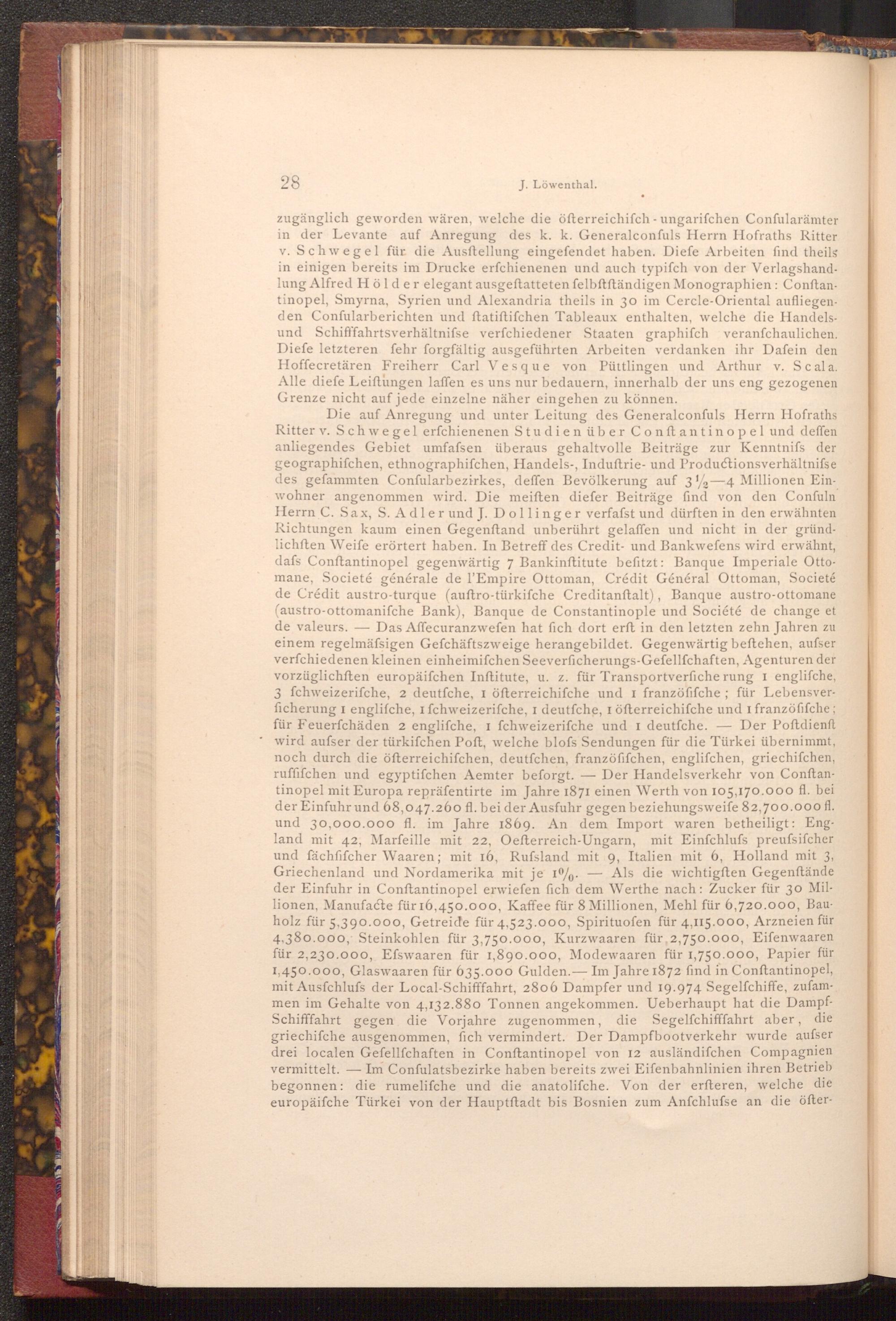 zugänglich geworden wären, welche die öfterreichiſch- ungarifchen Confularämter in der Levante auf Anregung des k. k. Generalconfuls Herrn Hofraths Ritter v. Schwegel für die Ausftellung eingefendet haben. Diefe Arbeiten find theils in einigen bereits im Drucke erfchienenen und auch typifch von der Verlagshandlung Alfred Hölder elegant ausgeftatteten felbftftändigen Monographien: Conftantinopel, Smyrna, Syrien und Alexandria theils in 30 im Cercle- Oriental aufliegenden Confularberichten und ftatiftifchen Tableaux enthalten, welche die Handelsund Schifffahrtsverhältnifse verfchiedener Staaten graphifch veranfchaulichen. Diefe letzteren fehr forgfältig ausgeführten Arbeiten verdanken ihr Dafein den Hoffecretären Freiherr Carl Vesque von Püttlingen und Arthur v. Scala. Alle diefe Leiftungen laffen es uns nur bedauern, innerhalb der uns eng gezogenen Grenze nicht auf jede einzelne näher eingehen zu können.
