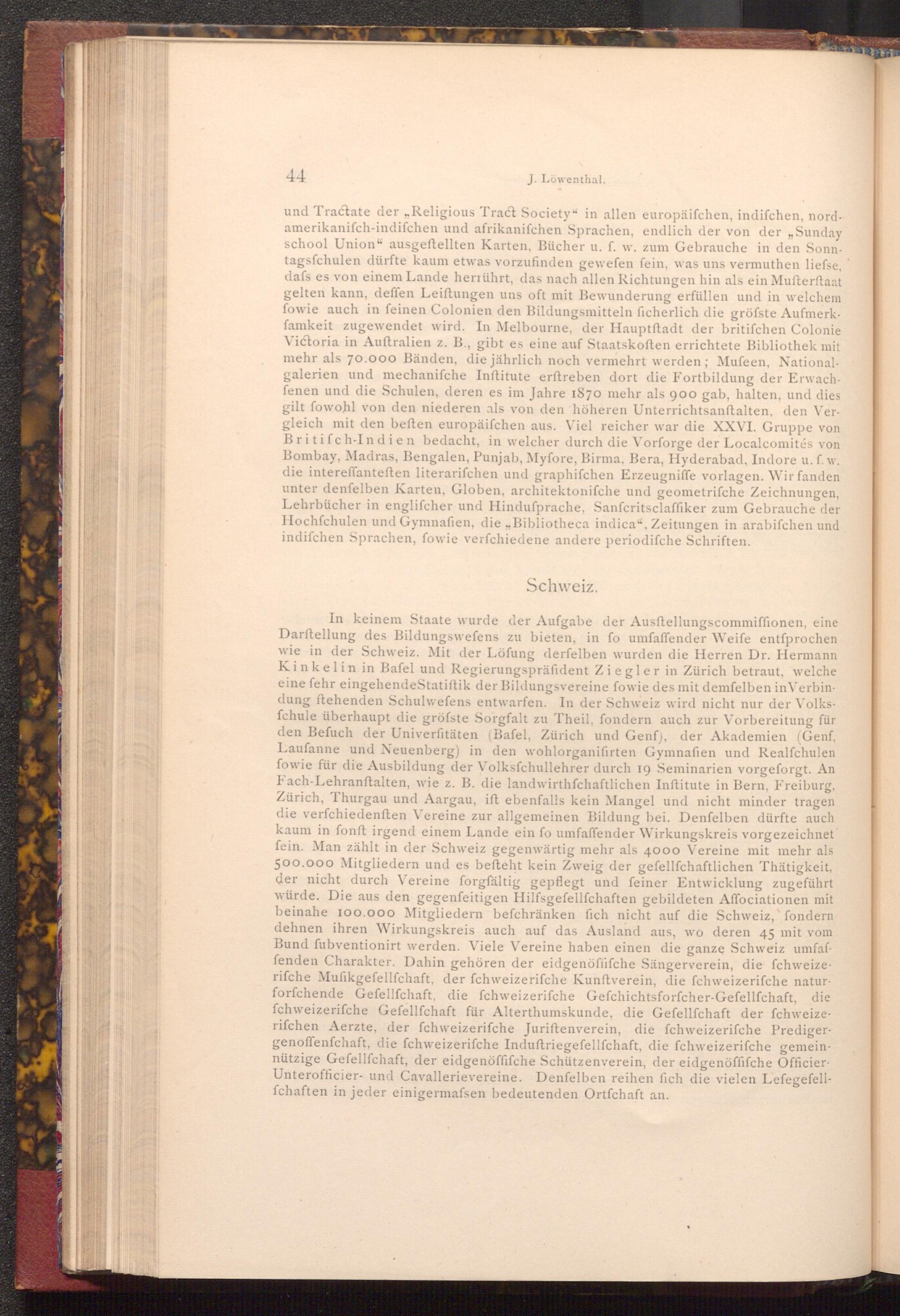 In keinem Staate wurde der Aufgabe der Ausftellungscommiffionen, eine Darstellung des Bildungswefens zu bieten, in fo umfaffender Weife entſprochen wie in der Schweiz. Mit der Löfung derfelben wurden die Herren Dr. Hermann Kinkelin in Bafel und Regierungspräfident Ziegler in Zürich betraut, welche eine fehr eingehende Statiſtik der Bildungsvereine fowie des mit demfelben in Verbin dung ftehenden Schulwefens entwarfen. In der Schweiz wird nicht nur der Volksfchule überhaupt die gröfste Sorgfalt zu Theil, fondern auch zur Vorbereitung für den Befuch der Univerſitäten( Bafel, Zürich und Genf), der Akademien( Genf, Laufanne und Neuenberg) in den wohlorganifirten Gymnafien und Realfchulen fowie für die Ausbildung der Volksfchullehrer durch 19 Seminarien vorgeforgt. An Fach- Lehranstalten, wie z. B. die landwirthschaftlichen Inftitute in Bern, Freiburg, Zürich, Thurgau und Aargau, ift ebenfalls kein Mangel und nicht minder tragen die verfchiedenften Vereine zur allgemeinen Bildung bei. Denfelben dürfte auch kaum in fonft irgend einem Lande ein fo umfaffender Wirkungskreis vorgezeichnet fein. Man zählt in der Schweiz gegenwärtig mehr als 4000 Vereine mit mehr als 500.000 Mitgliedern und es befteht kein Zweig der gefellfchaftlichen Thätigkeit, der nicht durch Vereine forgfältig gepflegt und feiner Entwicklung zugeführt würde. Die aus den gegenfeitigen Hilfsgefellſchaften gebildeten Affociationen mit beinahe 100.000 Mitgliedern befchränken fich nicht auf die Schweiz, fondern dehnen ihren Wirkungskreis auch auf das Ausland aus, wo deren 45 mit vom Bund fubventionirt werden. Viele Vereine haben einen die ganze Schweiz umfaffenden Charakter. Dahin gehören der eidgenöfüifche Sängerverein, die fchweize rifche Mufikgefellſchaft, der fchweizerifche Kunftverein, die fchweizerifche naturforfchende Gefellfchaft, die fchweizerifche Gefchichtsforfcher- Gefellfchaft, die fchweizerifche Gefellfchaft für Alterthumskunde, die Gefellfchaft der fchweizerifchen Aerzte, der fchweizerifche Juriftenverein, die fchweizerifche Predigergenoffenfchaft, die fchweizerifche Induftriegefellfchaft, die fchweizerifche gemeinnützige Gefellſchaft, der eidgenöffifche Schützenverein, der eidgenöffifche OfficierUnterofficier- und Cavallerievereine. Denfelben reihen fich die vielen Lefegefellfchaften in jeder einigermafsen bedeutenden Ortſchaft an.