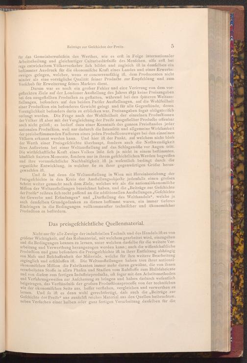 Nicht nur für alle Zweige der induftriellen Technik und des Handels ift es von gröfster Wichtigkeit, auf das Rohmaterial, mit welchem gearbeitet wird, einzugehen und die Bedingungen kennen zu lernen, unter welchen dasfelbe für die weitere Verarbeitung und Verwerthung herangezogen werden kann; auch die wiffenfchaftliche Production und ganz befonders die Preisgefchichte ift in ihrer Entfaltung abhängig von Mafs und Befchaffenheit der Materiale, welche für ihre weitere Bearbeitung zugänglich und erfchloffen ift. Die Weltausftellungen haben treu ihrer nationalökonomifchen Miffion die Fabrikanten immer mehr daran gewöhnt, die von ihnen verarbeiteten Stoffe in allen Phafen und Stadien vom Rohftoffe zum Halbfabricate und von diefem zum fertigen Induftrie producte, oft fogar mit den Arbeitsmethoden und Verfahrungsweifen zur Anfchauung zu bringen und haben dadurch wefentlich beigetragen, das Verſtändnifs der grofsen Productionsproceffe von der techniſchen wie der ökonomifchen Seite aus, beffer verftehen, vergleichen und verwerthen zu lernen. Und fo ift es denn wohl gerechtfertigt, dafs auch die Beiträge zur Gefchichte der Preife" uns zunächft reiches Material aus den Quellen beibrachten, neben Verfuchen einer halben oder ganz fertigen Verarbeitung desfelben für die
