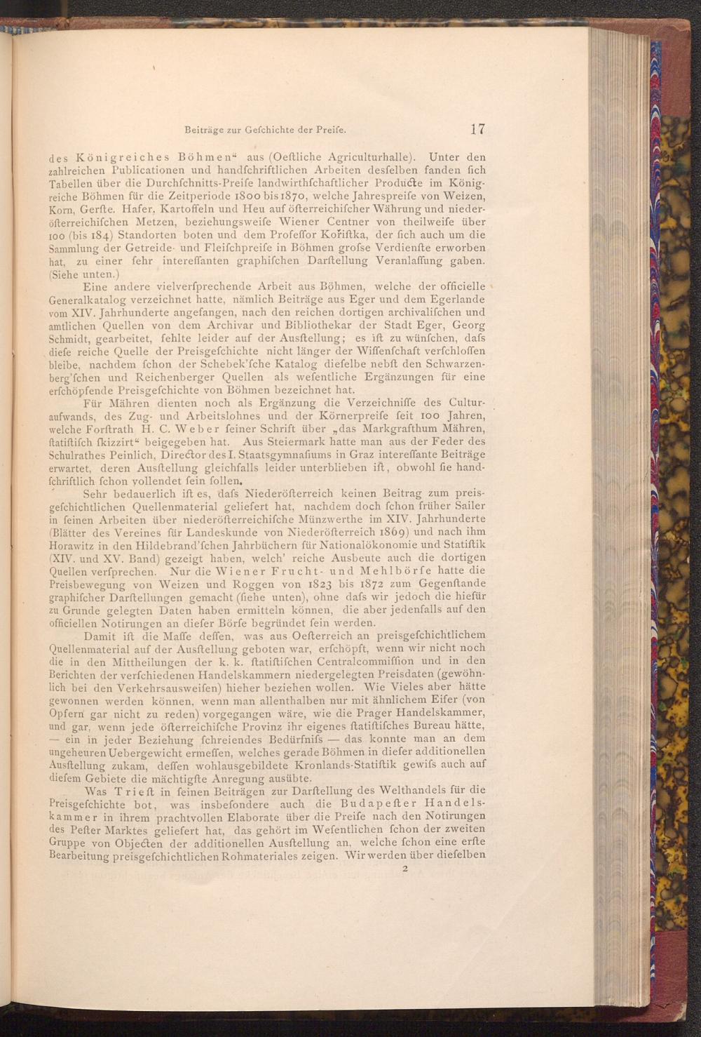 Was Trieft in feinen Beiträgen zur Darstellung des Welthandels für die Preisgefchichte bot, was insbefondere auch die Budapefter Handelskammer in ihrem prachtvollen Elaborate über die Preife nach den Notirungen des Pefter Marktes geliefert hat, das gehört im Wefentlichen fchon der zweiten Gruppe von Objecten der additionellen Ausftellung an, welche fchon eine erfte Bearbeitung preisgefchichtlichen Rohmateriales zeigen. Wir werden über diefelben