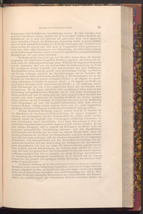 Leider find in Bezug auf die Durchfchnittsberechnungen ähnliche Directiven weder von der kaiferlichen Commiffion, noch von der Prager Handelskammer aufgeftellt worden, was freilich bei dem noch immer controverfen Stande diefer theoretifchen Frage begreiflich, aber auch Veranlaffung war, dafs in dilettantifcher Weife und ahnungslos Durchfchnitte aus blofsen Minimal- und Maximalziffern, aus ungleich langen oder lückenhaften Perioden berechnet wurden, die