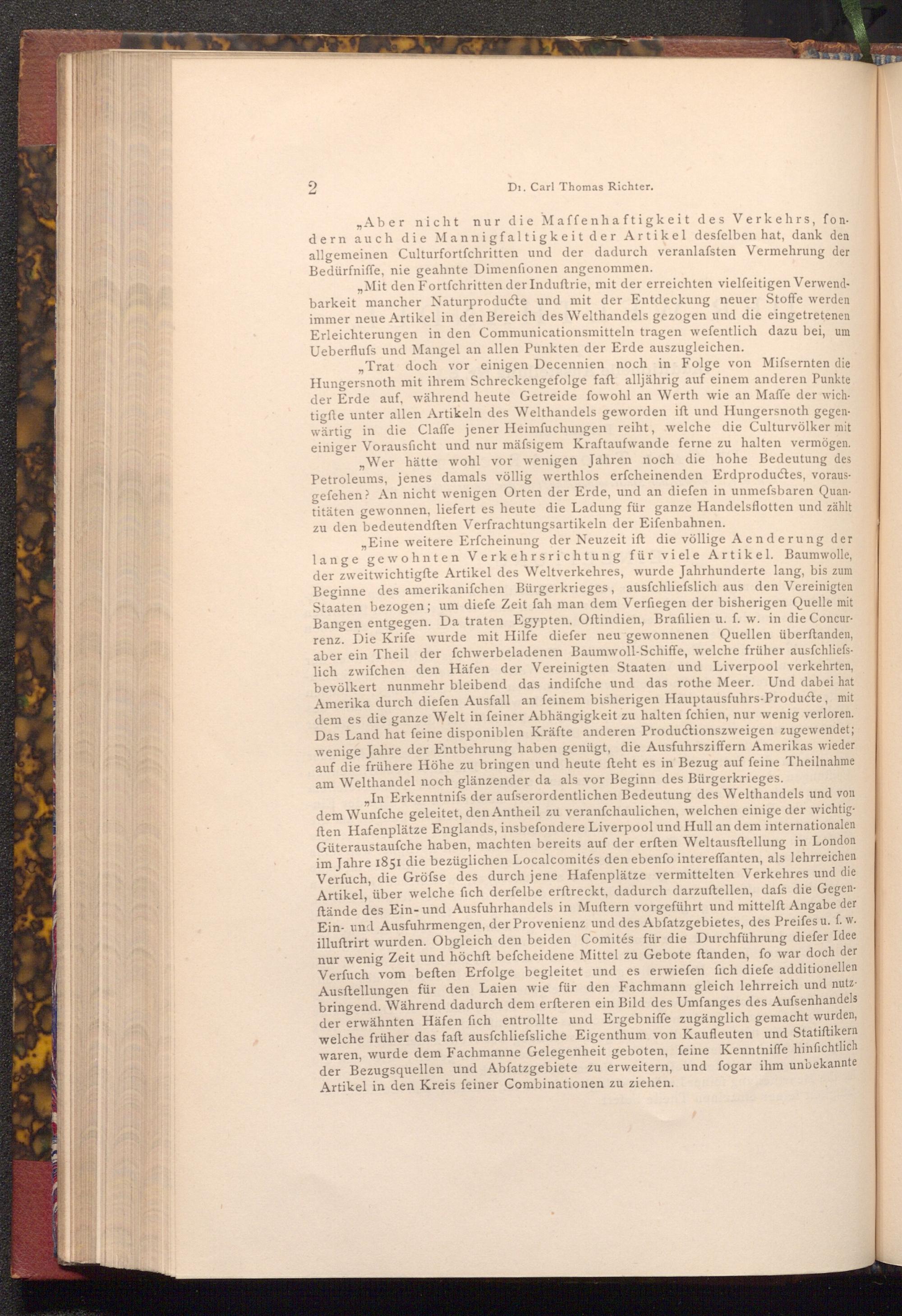 „ Aber nicht nur die Maffenhaftigkeit des Verkehrs, fondern auch die Mannigfaltigkeit der Artikel desfelben hat, dank den allgemeinen Culturfortfchritten und der dadurch veranlafsten Vermehrung der Bedürfniffe, nie geahnte Dimenfionen angenommen.