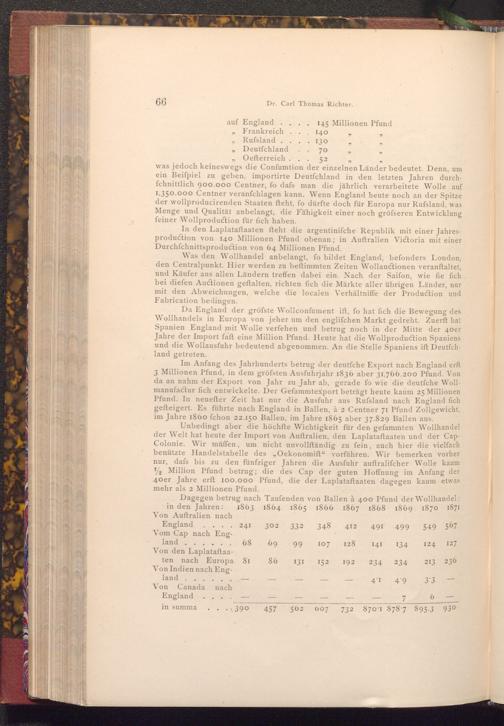 Was den Wollhandel anbelangt, fo bildet England, befonders London, den Centralpunkt. Hier werden zu beftimmten Zeiten Wollauctionen veranstaltet, und Käufer aus allen Ländern treffen dabei ein. Nach der Saifon, wie fie fich bei diefen Auctionen geftalten, richten fich die Märkte aller übrigen Länder, nur mit den Abweichungen, welche die localen Verhältniffe der Production und Fabrication bedingen.