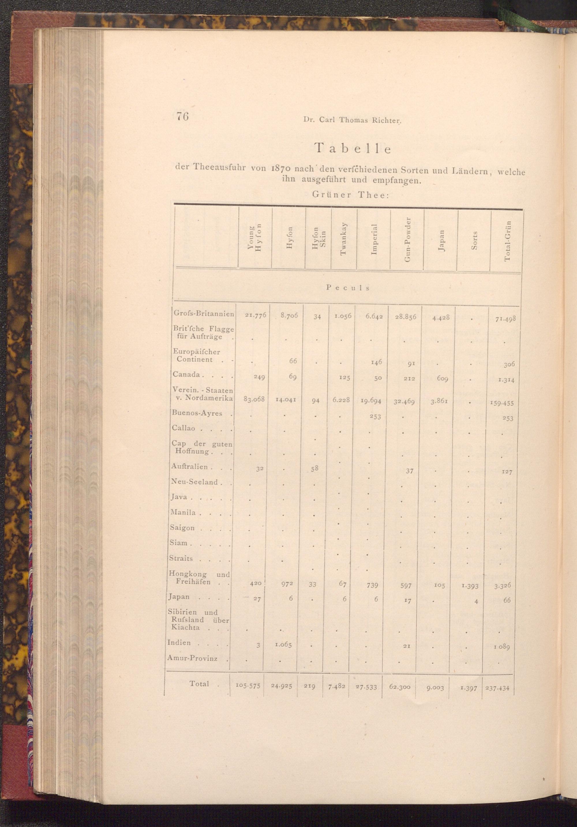 der Theeausfuhr von 1870 nach den verfchiedenen Sorten und Ländern, welche ihn ausgeführt und empfangen.