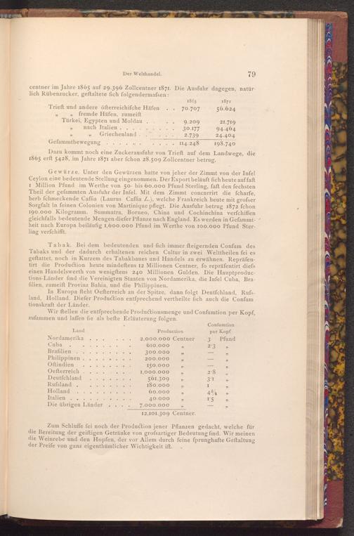 Dazu kommt noch eine Zuckerausfuhr von Trieft auf dem Landwege, die 1865 erft 5428, im Jahre 1871 aber fchon 28.509 Zollcentner betrug.
