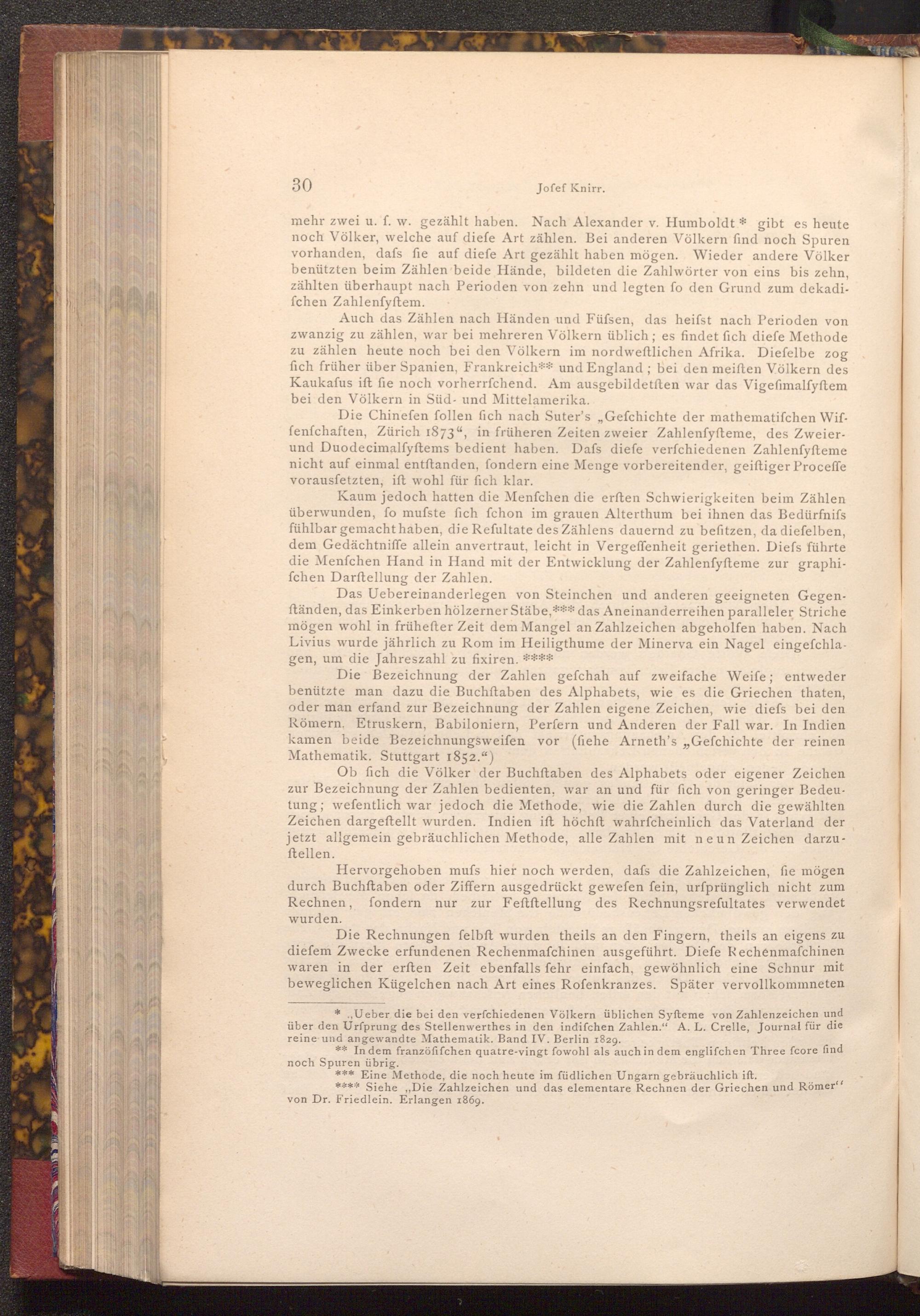 , Ueber die bei den verfchiedenen Völkern üblichen Syfteme von Zahlenzeichen und über den Ursprung des Stellenwerthes in den indifchen Zahlen." A. L. Crelle, Journal für die reine und angewandte Mathematik. Band IV. Berlin 1829.
