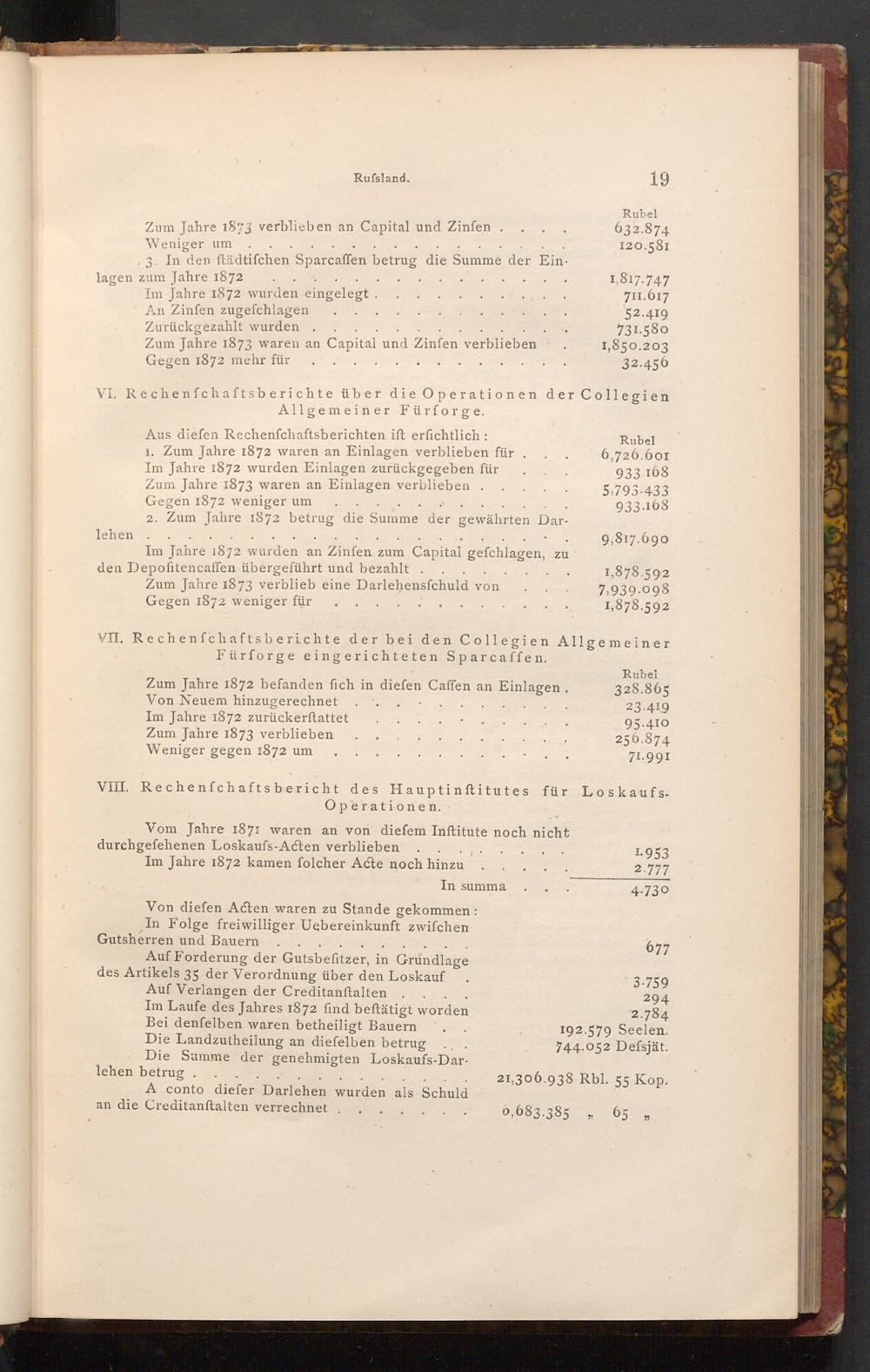 VIII. Rechenfchaftsbericht des Hauptinftitutes für Loskaufs