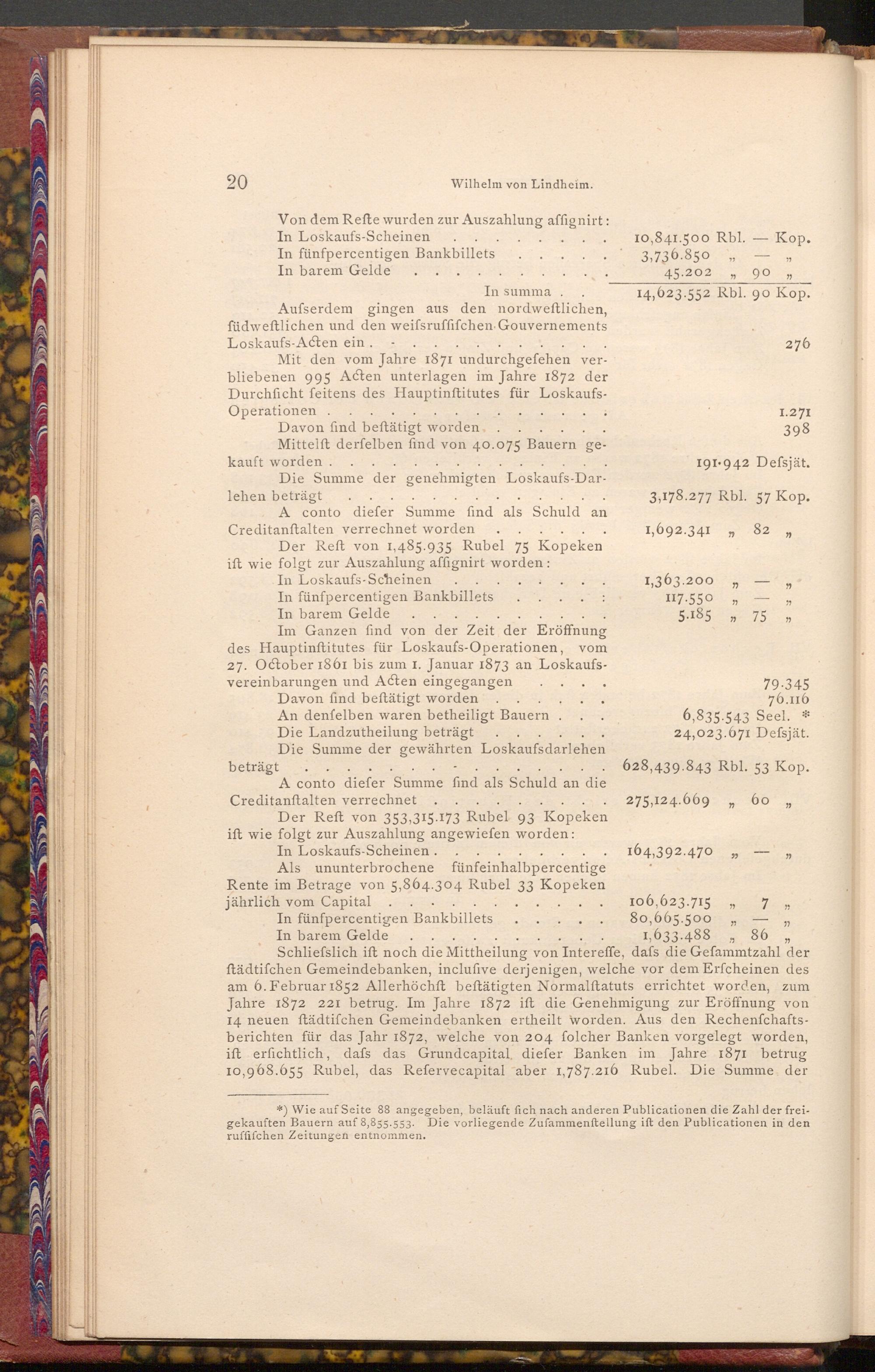 Der Reft von 1,485.935 Rubel 75 Kopeken ift wie folgt zur Auszahlung affignirt worden: In Loskaufs- Scheinen