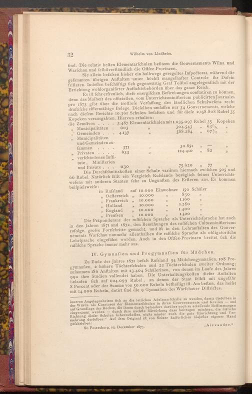 find. Die relativ beften Elementarfchulen befitzen die Gouvernements Wilna und Warfchau und felbftverftändlich die Oftfee- Provinzen.