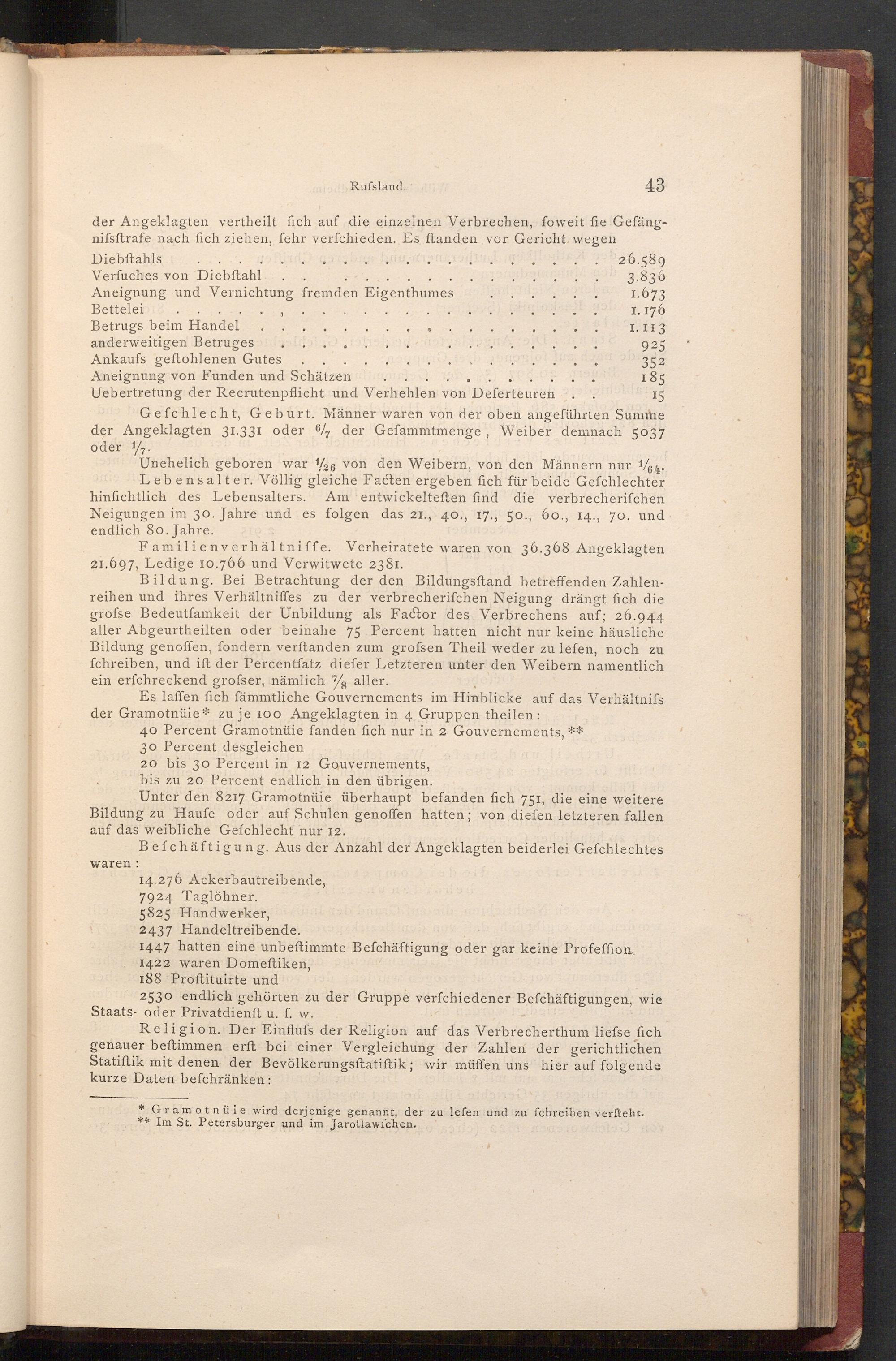 Unter den 8217 Gramotnüie überhaupt befanden fich 751, die eine weitere Bildung zu Haufe oder auf Schulen genoffen hatten; von diefen letzteren fallen auf das weibliche Gefchlecht nur 12.