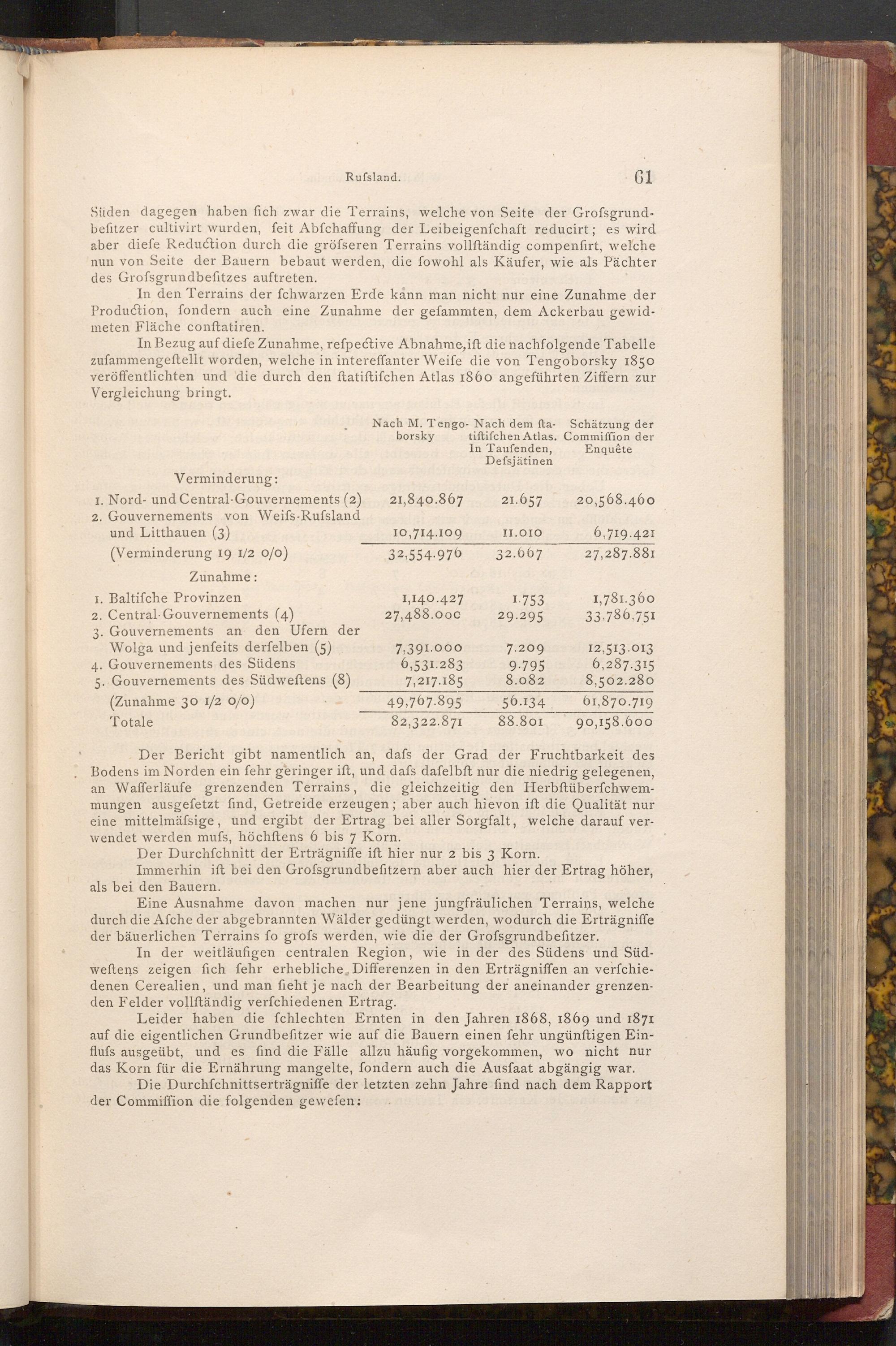 In den Terrains der fchwarzen Erde kann man nicht nur eine Zunahme der Production, fondern auch eine Zunahme der gefammten, dem Ackerbau gewid meten Fläche conftatiren.