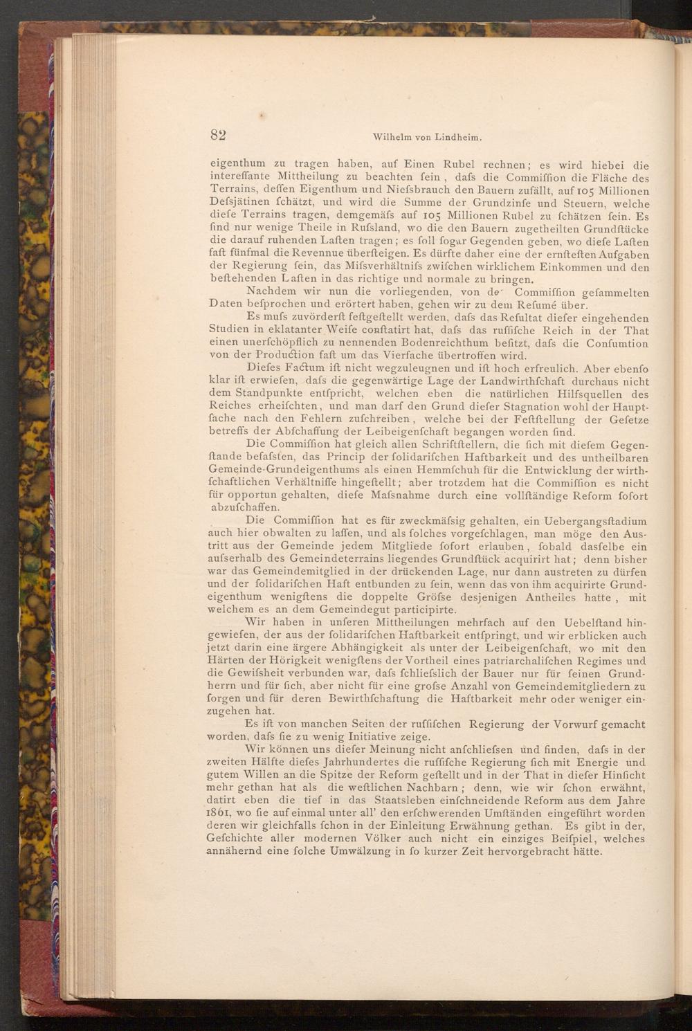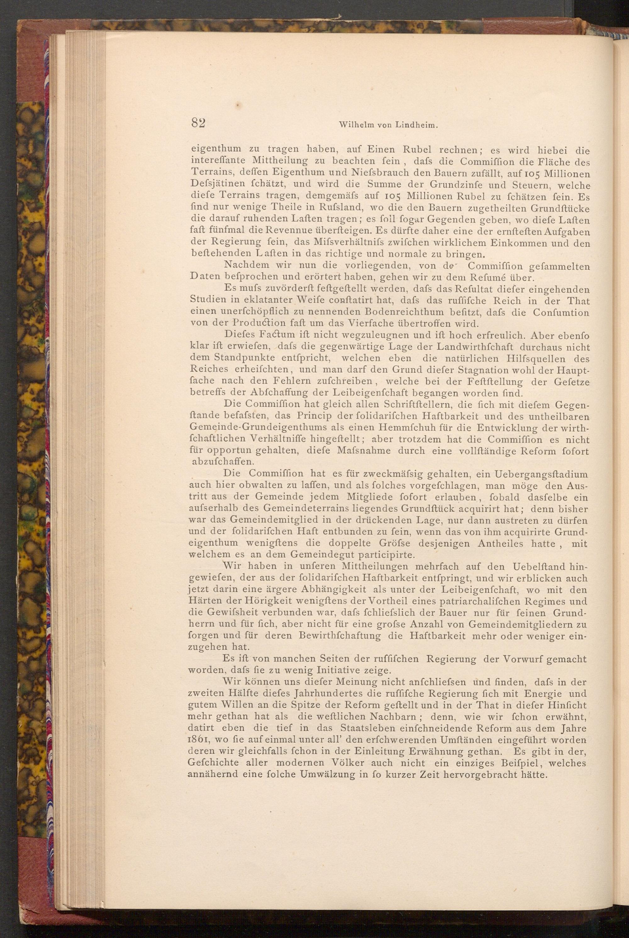 Es mufs zuvörderft feftgeftellt werden, dafs das Refultat diefer eingehenden Studien in eklatanter Weife conftatirt hat, dafs das ruffifche Reich in der That einen unerfchöpflich zu nennenden Bodenreichthum befitzt, dafs die Confumtion von der Production faft um das Vierfache übertroffen wird.